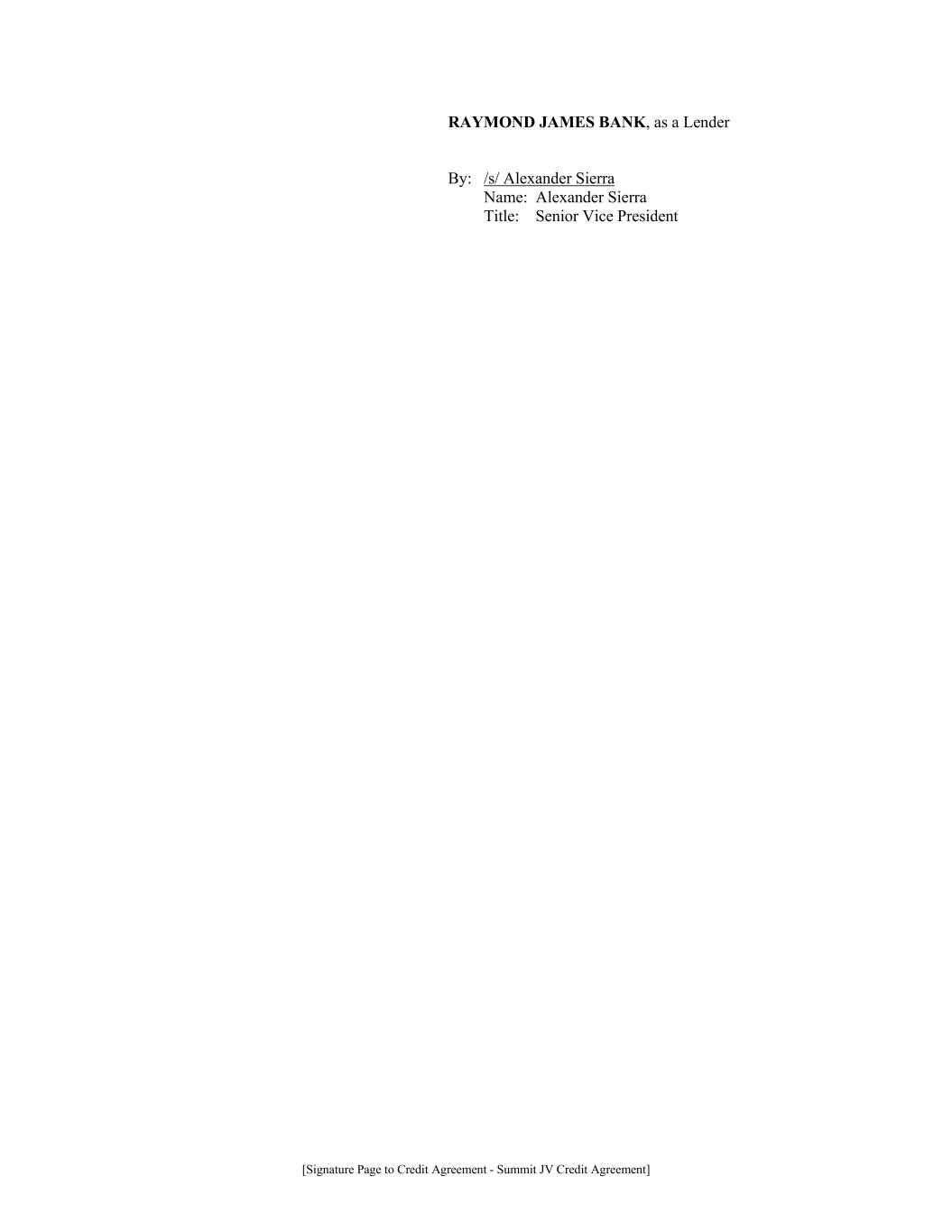 [Signature Page to Credit Agreement - Summit JV Credit Agreement] RAYMOND JAMES BANK, as a Lender By: /s/ Alexander Sierra Name: Alexander Sierra Title: Senior Vice President