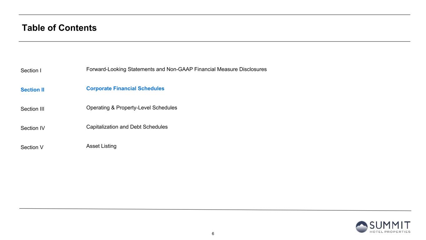 4 Non-GAAP Financial Measures We disclose certain “non-GAAP financial measures,” which are measures of our historical financial performance. Non-GAAP financial measures are financial measures not prescribed by Generally Accepted Accounting Principles ("GAAP"). These measures are as follows: (i) Funds From Operations (“FFO”) and Adjusted Funds from Operations ("AFFO"), (ii) Earnings before Interest, Taxes, Depreciation and Amortization ("EBITDA"), Earnings before Interest, Taxes, Depreciation and Amortization for Real Estate ("EBITDAre") and Adjusted EBITDAre (as described below). We caution investors that amounts presented in accordance with our definitions of non-GAAP financial measures may not be comparable to similar measures disclosed by other companies, since not all companies calculate these non-GAAP financial measures in the same manner. Our non-GAAP financial measures should be considered along with, but not as alternatives to, net income (loss) as a measure of our operating performance. Our non-GAAP financial measures may include funds that may not be available for our discretionary use due to functional requirements to conserve funds for capital expenditures, property acquisitions, debt service obligations and other commitments and uncertainties. Although we believe that our non- GAAP financial measures can enhance the understanding of our financial condition and results of operations, these non-GAAP financial measures are not necessarily better indicators of any trend as compared to a comparable measure prescribed by GAAP such as net income (loss). FFO and AFFO As defined by Nareit, FFO represents net income or loss (computed in accordance with GAAP), excluding preferred dividends, gains (or losses) from sales of real property, impairment losses on real estate assets, items classified by GAAP as extraordinary, the cumulative effect of changes in accounting principles, plus depreciation and amortization related to real estate assets, and adjustments for unconsolidated partnerships, and joint ventures. AFFO represents FFO excluding amortization of deferred financing costs, franchise fees, equity-based compensation expense, transaction costs, debt transaction costs, premiums on redemption of preferred shares, losses from net casualties, non-cash interest income and non-cash income tax related adjustments to our deferred tax asset. Unless otherwise indicated, we present FFO and AFFO applicable to our common shares and common units. We present FFO and AFFO because we consider FFO and AFFO an important supplemental measure of our operational performance and believe it is frequently used by securities analysts, investors, and other interested parties in the evaluation of REITs, many of which present FFO and AFFO when reporting their results. FFO and AFFO are intended to exclude GAAP historical cost depreciation and amortization, which assumes that the value of real estate assets diminishes ratably over time. Historically, however, real estate values have risen or fallen with market conditions. Because FFO and AFFO exclude depreciation and amortization related to real estate assets, gains and losses from real property dispositions and impairment losses on real estate assets, and certain transaction costs related to lodging property acquisition activities and debt, FFO and AFFO provide performance measures that, when compared year over year, reflect the effect to operations from trends in occupancy, guestroom rates, operating costs, development activities and interest costs, providing perspective not immediately apparent from net income. Our computation of FFO differs slightly from the computation of Nareit-defined FFO related to the reporting of depreciation and amortization expense on assets at our corporate offices, which is de minimis. Our computation of FFO may also differ from the methodology for calculating FFO used by other equity REITs and, accordingly, may not be comparable to such other REITs. FFO and AFFO should not be considered as an alternative to net income (loss) (computed in accordance with GAAP) as an indicator of our liquidity, nor is it indicative of funds available to fund our cash needs, including our ability to pay dividends or make distributions. Where indicated in this Earnings Release Supplement, FFO is based on our computation of FFO and not the computation of Nareit- defined FFO unless otherwise noted.