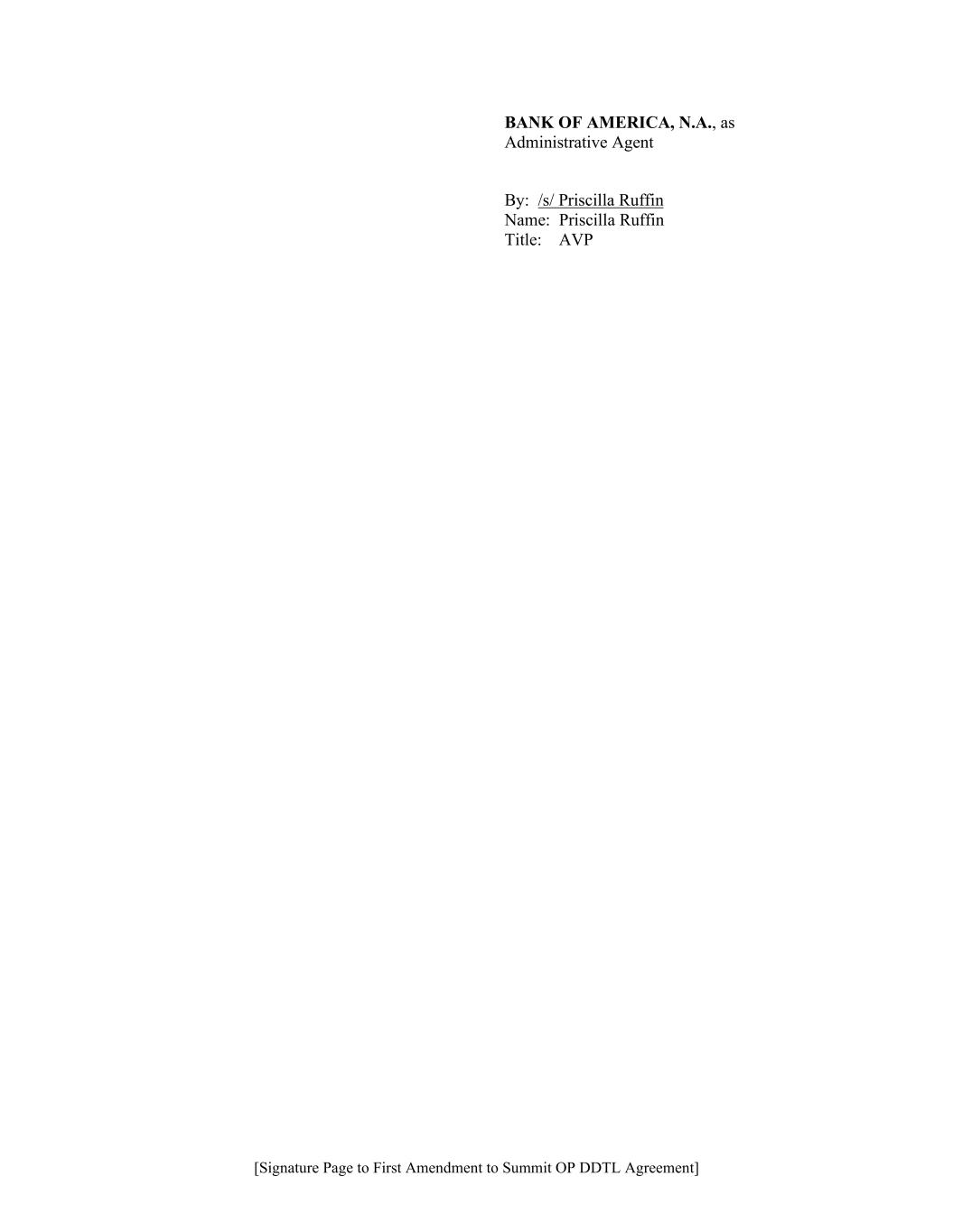 [Signature Page to First Amendment to Summit OP DDTL Agreement] BANK OF AMERICA, N.A., as Administrative Agent By: /s/ Priscilla Ruffin Name: Priscilla Ruffin Title: AVP