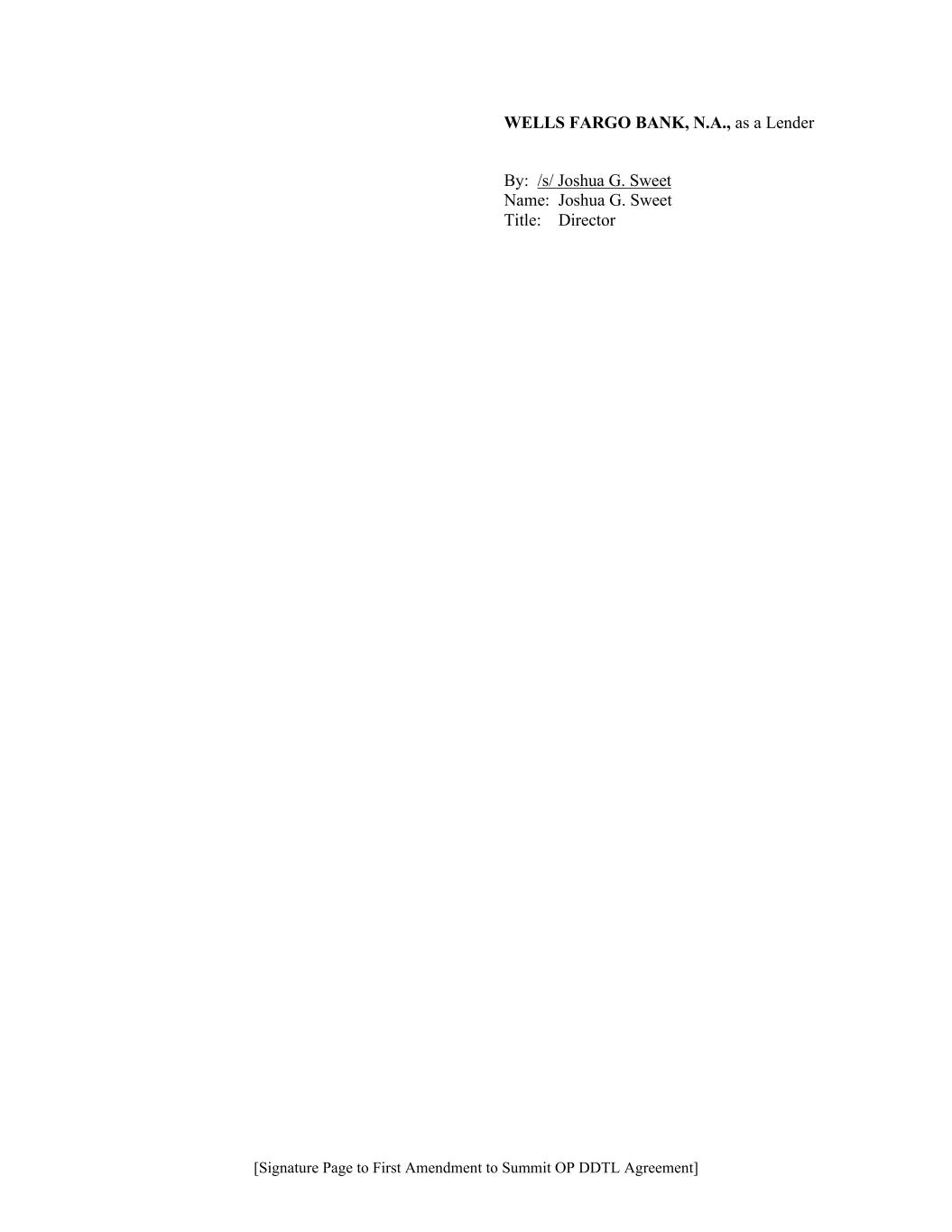 [Signature Page to First Amendment to Summit OP DDTL Agreement] WELLS FARGO BANK, N.A., as a Lender By: /s/ Joshua G. Sweet Name: Joshua G. Sweet Title: Director