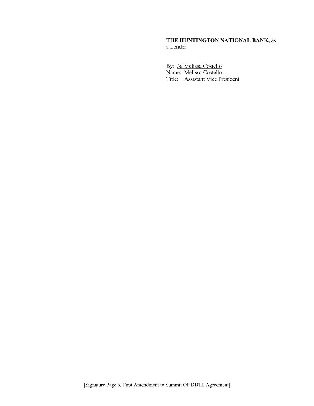 [Signature Page to First Amendment to Summit OP DDTL Agreement] THE HUNTINGTON NATIONAL BANK, as a Lender By: /s/ Melissa Costello Name: Melissa Costello Title: Assistant Vice President