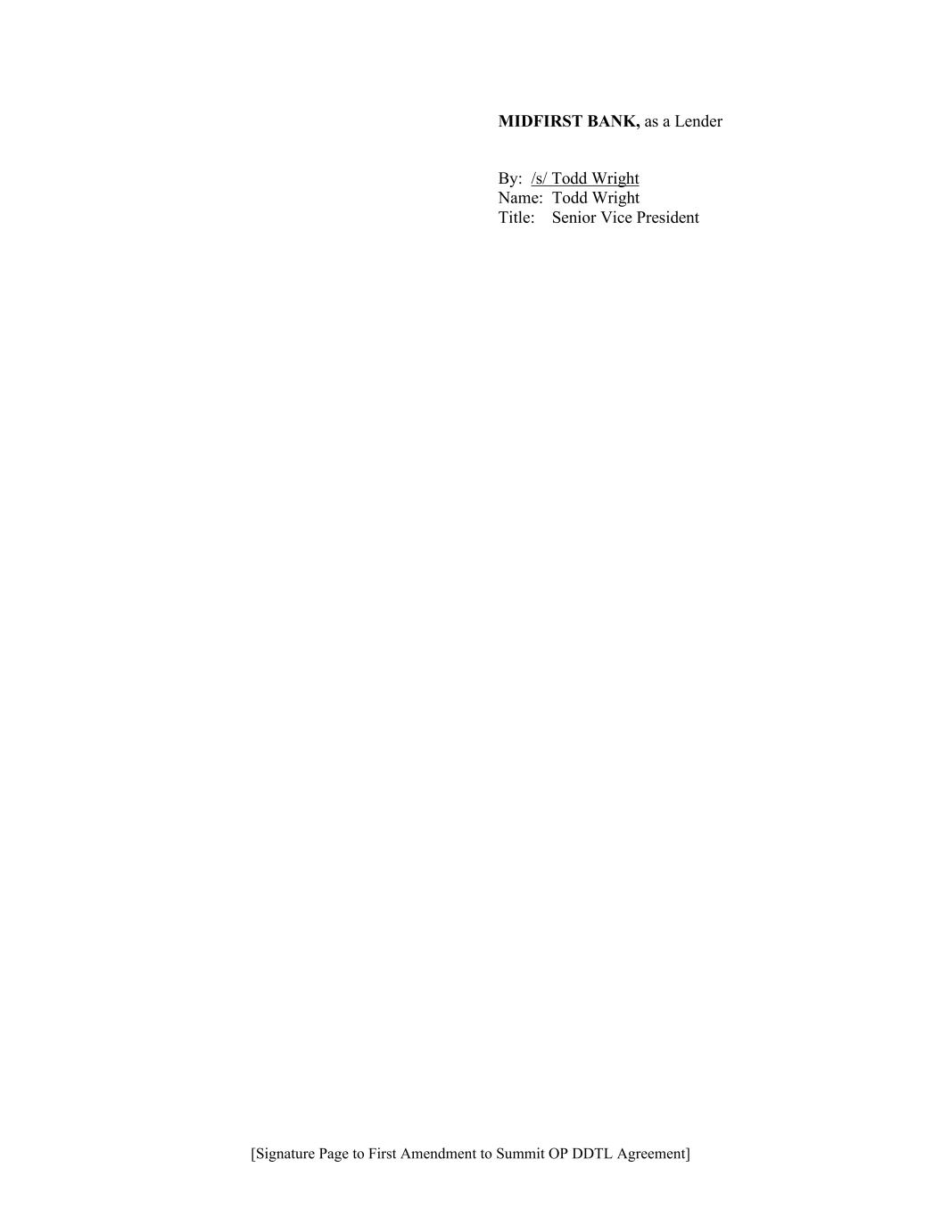 [Signature Page to First Amendment to Summit OP DDTL Agreement] MIDFIRST BANK, as a Lender By: /s/ Todd Wright Name: Todd Wright Title: Senior Vice President