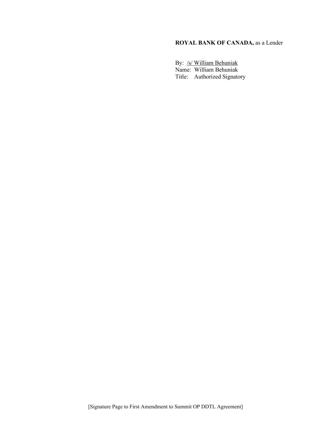 [Signature Page to First Amendment to Summit OP DDTL Agreement] ROYAL BANK OF CANADA, as a Lender By: /s/ William Behuniak Name: William Behuniak Title: Authorized Signatory