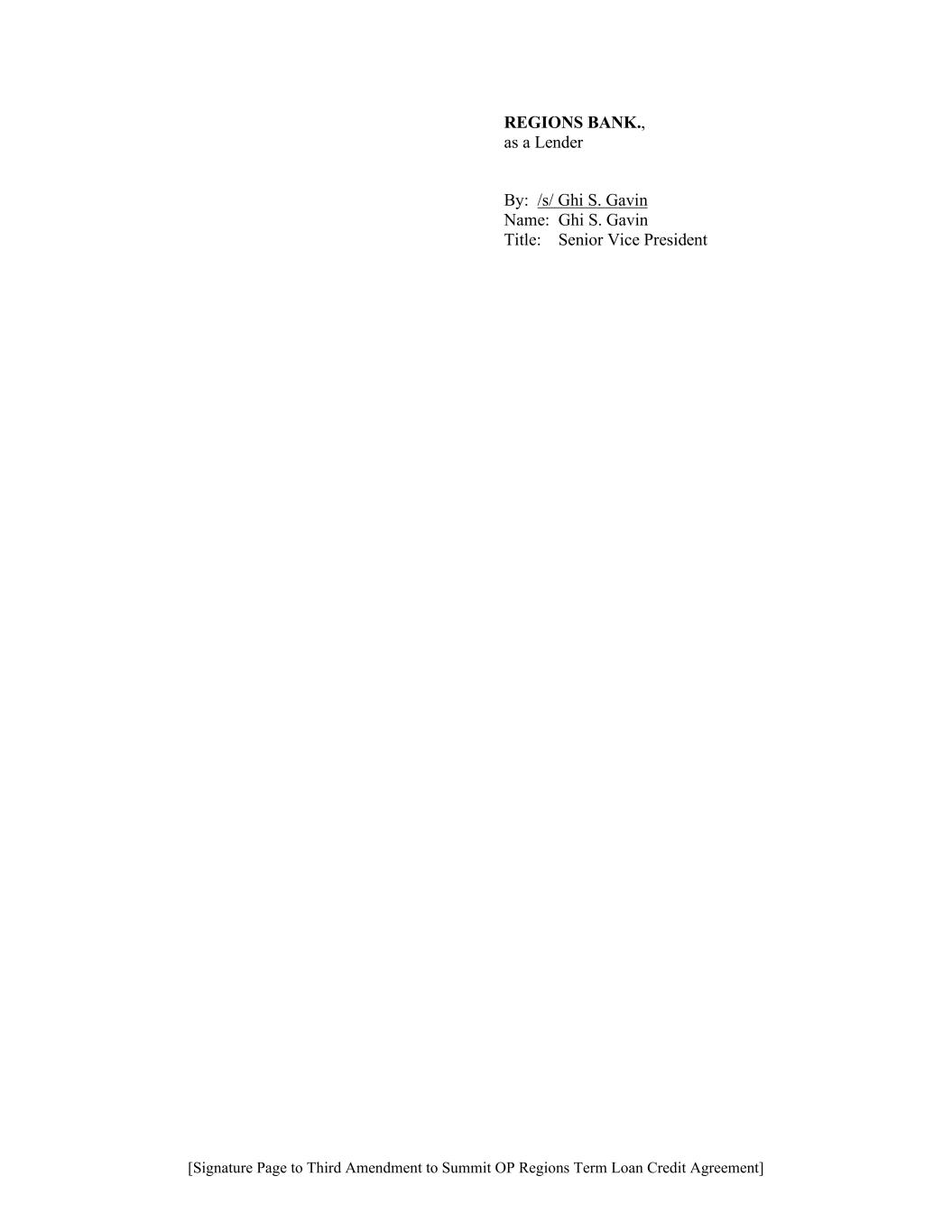 [Signature Page to Third Amendment to Summit OP Regions Term Loan Credit Agreement] REGIONS BANK., as a Lender By: /s/ Ghi S. Gavin Name: Ghi S. Gavin Title: Senior Vice President