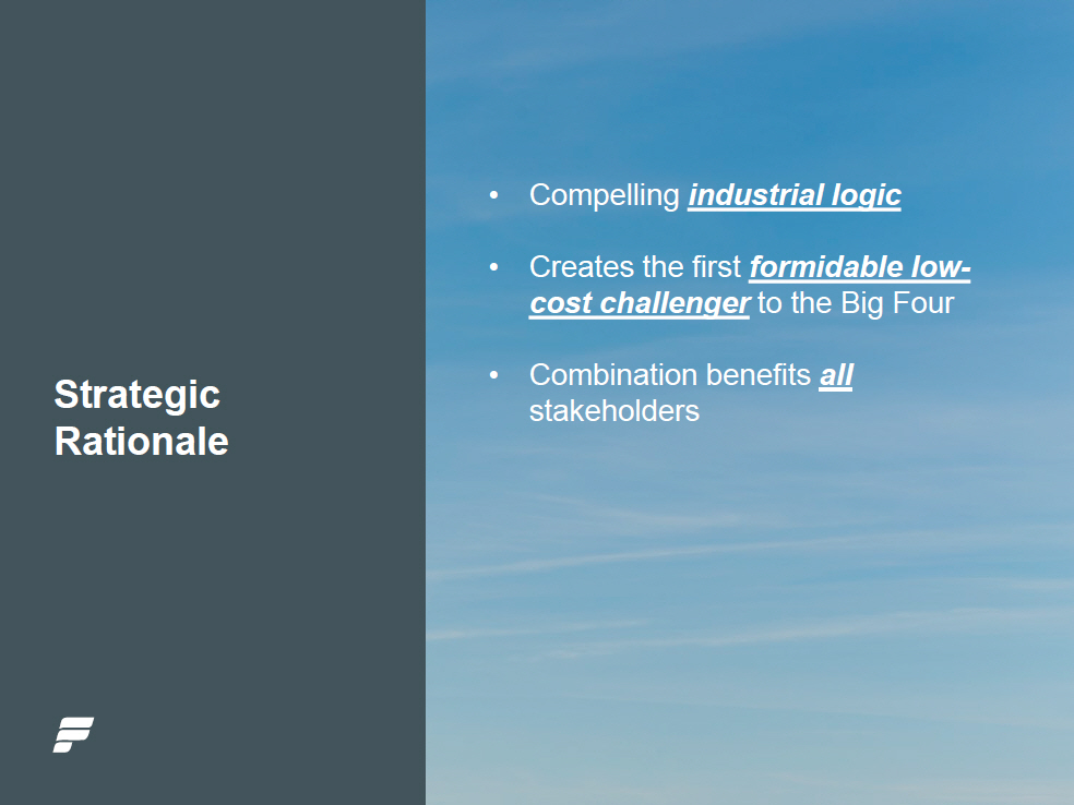 Strategic Ra ti ona l e • Compelling industrial logic • Creates the first formidable low - cost challenger to the Big Four • Combination benefits all stakeholders