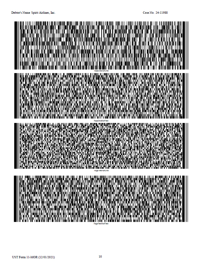 Debtor's Name Spirit Airlines, Inc. Case No. 24 - 11988 PageOnePartOne PageOnePartTwo PageTwoPartOne PageTwoPartTwo 10 UST Form 11 - MOR (12/01/2021)