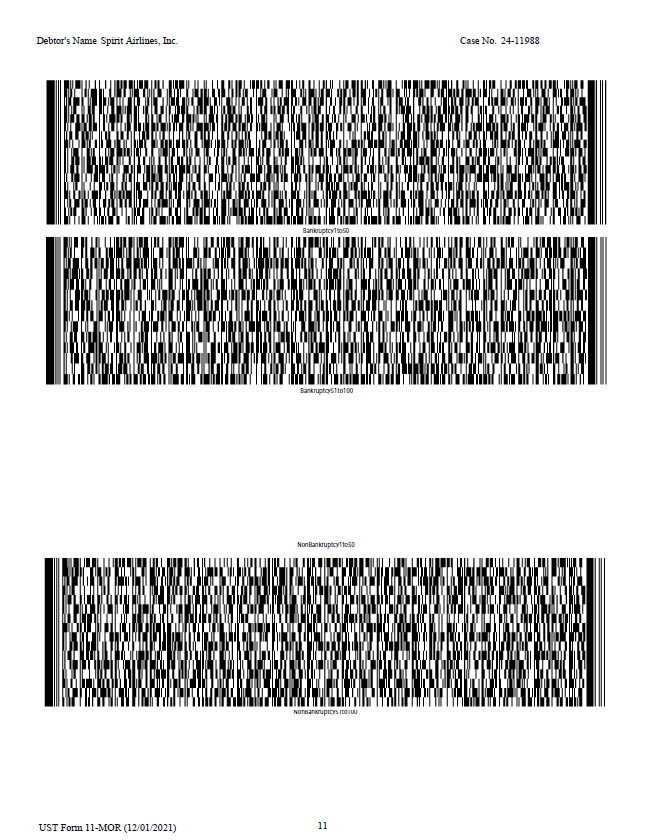 7 UST Form 11 - MOR (12/01/2021) Debtor's Name Spirit Airlines, Inc. Case No. 24 - 11988 lvii lviii lix lx lxi lxii lxiii lxiv lxv lxvi lxvii lxviii lxix lxx lxxi lxxii lxxiii lxxiv lxxv lxxvi lxxvii lxxvii lxxix lxxx lxxxi lxxxii lxxxii lxxxiv lxxxv lxxxvi lxxxvi lxxxvi lxxxix xc xci xcii xciii xciv xcv xcvi xcvii xcviii