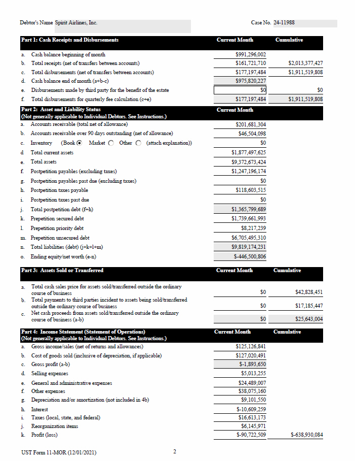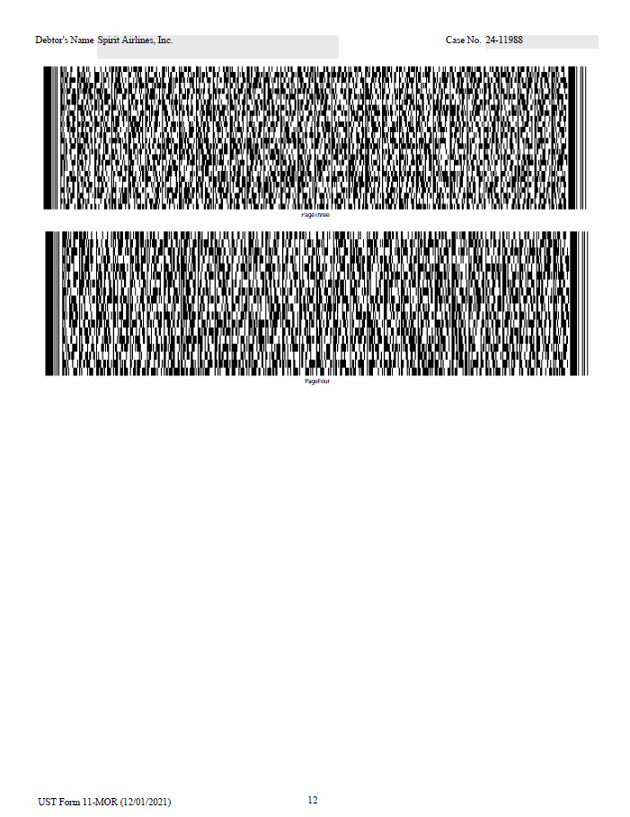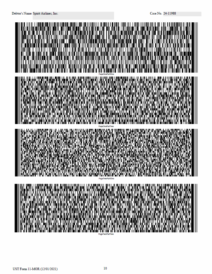 Debtor's Name Spirit Airlines, Inc. Case No. 24 - 11988 PageOnePartOne PageOnePartTwo PageTwoPartOne PageTwoPartTwo 10 UST Form 11 - MOR (12/01/2021)