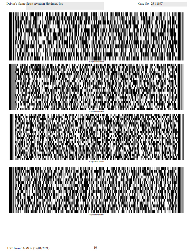 Debtor's Name Spirit Aviation Holdings, Inc. Case No. 25 - 11897 PageOnePartOne PageOnePartTwo PageTwoPartOne PageTwoPartTwo 10 UST Form 11 - MOR (12/01/2021)