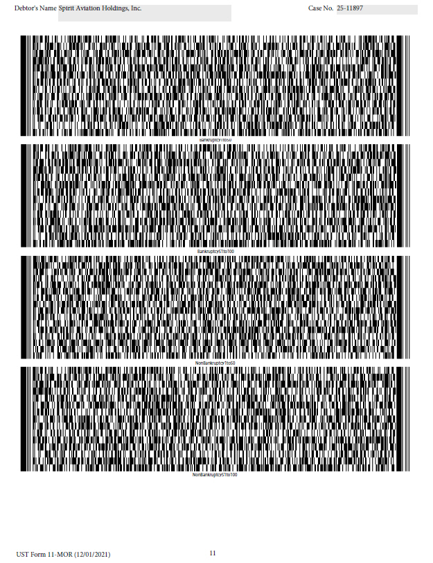 7 UST Form 11 - MOR (12/01/2021) Debtor's Name Spirit Aviation Holdings, Inc. Case No. 25 - 11897 lvii lviii lix lx lxi lxii lxiii lxiv lxv lxvi lxvii lxviii lxix lxx lxxi lxxii lxxiii lxxiv lxxv lxxvi lxxvii lxxviii lxxix lxxx lxxxi lxxxii lxxxiii lxxxiv lxxxv lxxxvi lxxxvi lxxxvi lxxxix xc xci xcii xciii xciv xcv xcvi xcvii xcviii