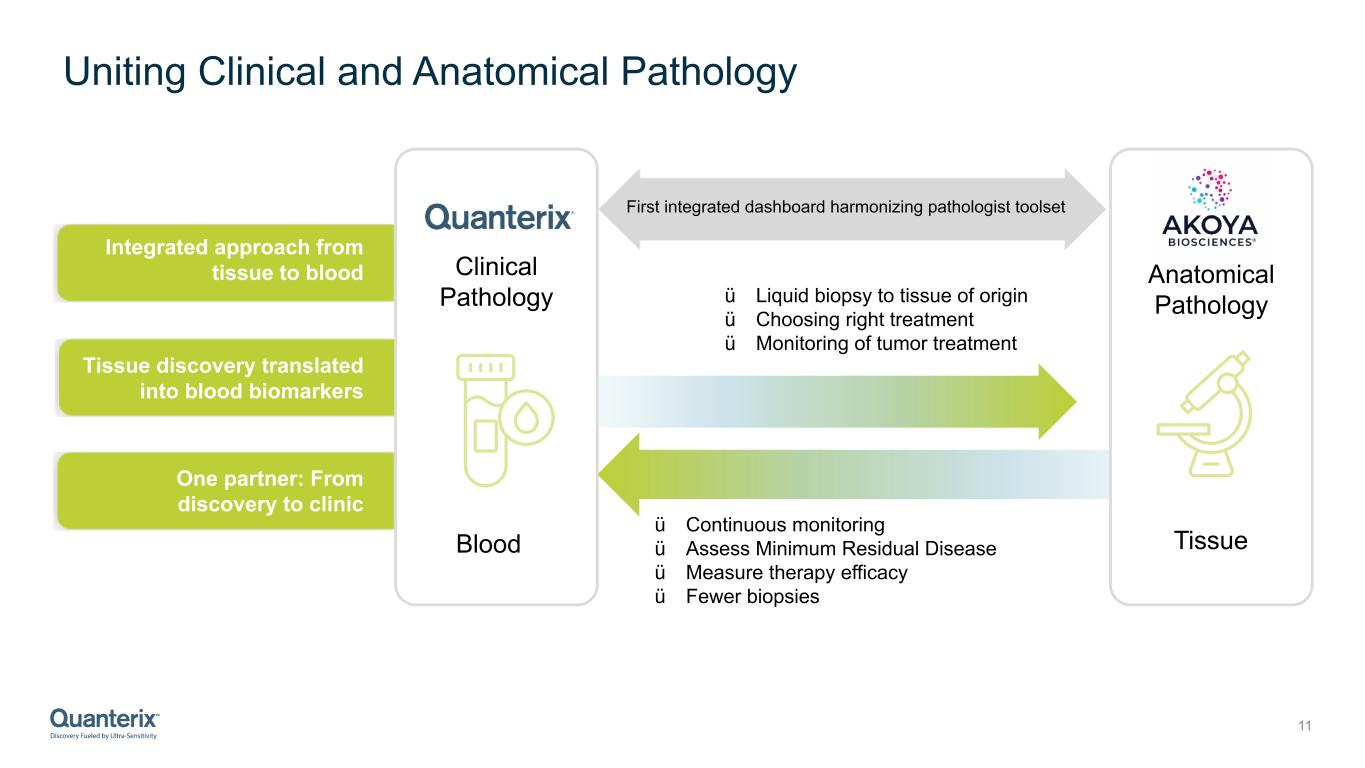 Uniquely positioned to accelerate market development of new liquid biopsy tests … 10 #1 in Ultra-Sensitive Detection of Biomarkers Track disease progression from tissue to blood #1 in Spatial Phenotyping tools … as liquid biopsy is expected to eventually surpass the market size of all other diagnostics testing combined.