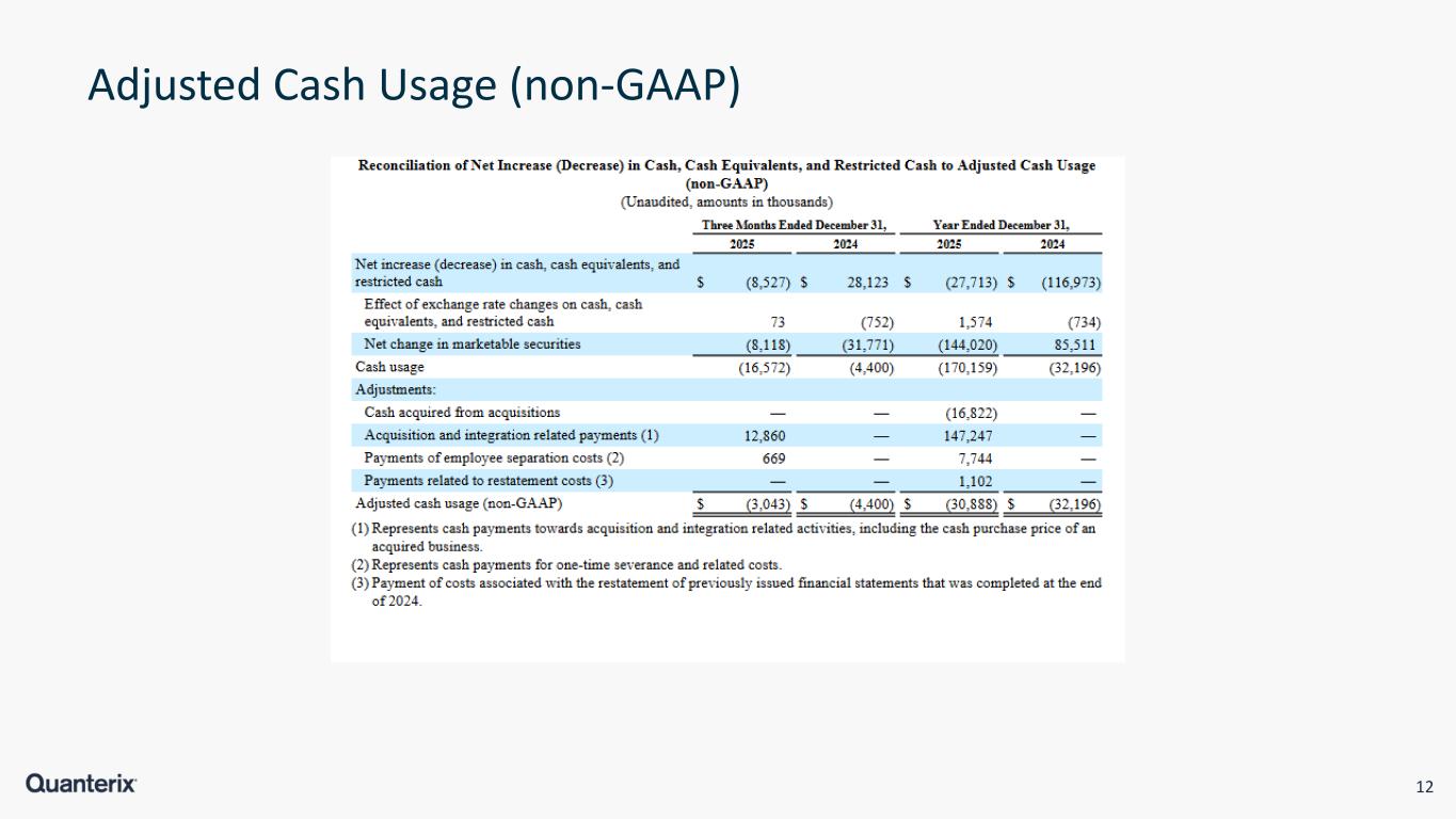 12 Adjusted Cash Usage (non-GAAP)