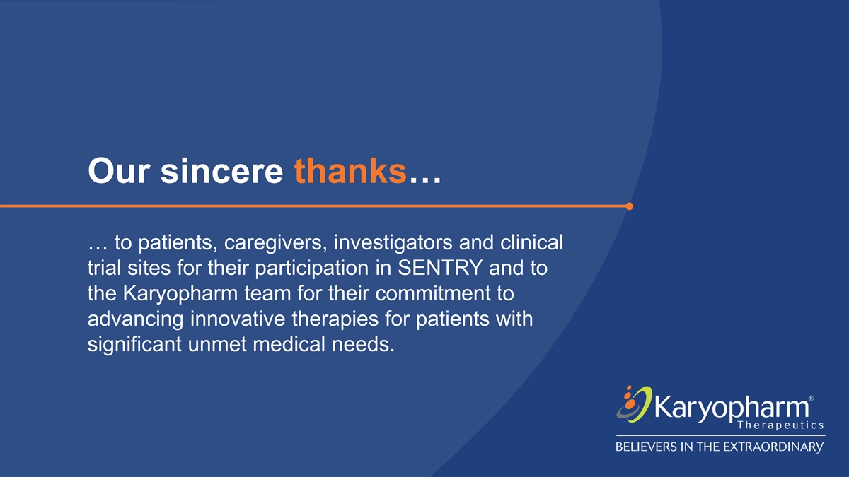 Our sincere thanks… … to patients, caregivers, investigators and clinical trial sites for their participation in SENTRY and to the Karyopharm team for their commitment to advancing innovative therapies for patients with significant unmet medical needs.