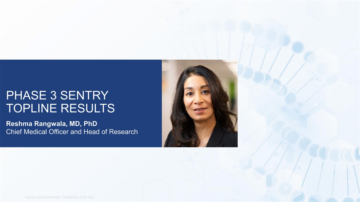 PHASE 3 SENTRY TOPLINE RESULTS Reshma Rangwala, MD, PhD Chief Medical Officer and Head of Research ©2026 KARYOPHARM THERAPEUTICS INC.