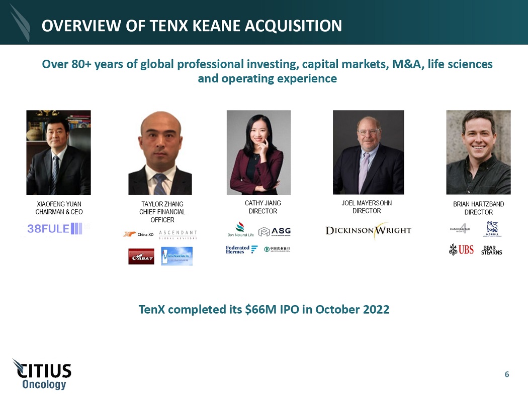 OVERVIEW OF TENX KEANE ACQUISITION X I AO F E N G Y U AN CHA I RM A N & CE O T AY L O R Z HA NG CHI E F F I NANCI A L OFFICER CA T H Y J I ANG DIRECTOR BRIA N HA R TZ BA ND DIRECTOR J O E L M AYE R SO H N DIRECTOR Over 80+ years of global professional investing, capital markets, M&A, life sciences and operating experience TenX completed its $66M IPO in October 2022 6