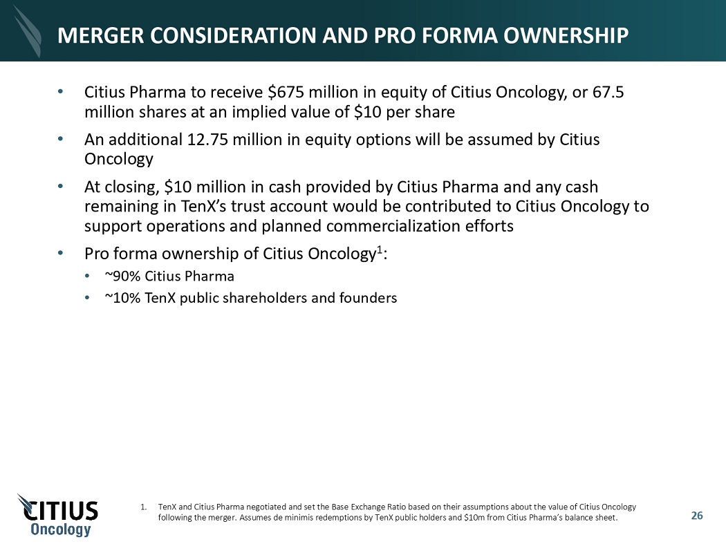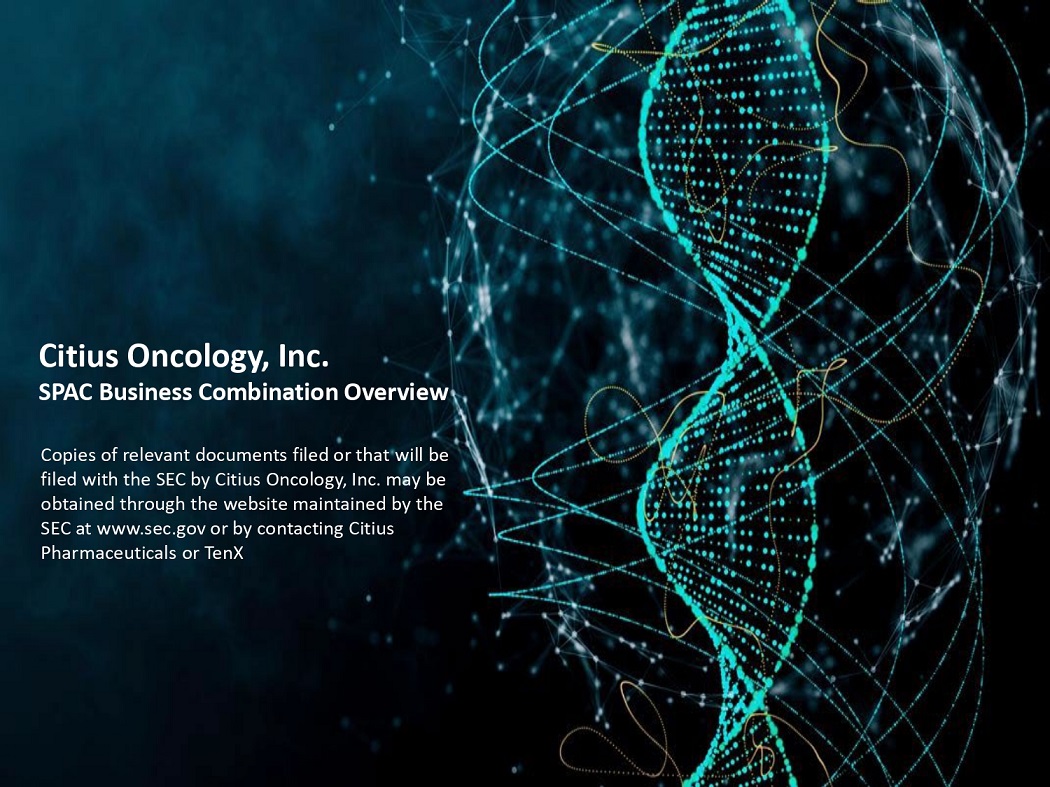 Citius Oncology, Inc. SPAC Business Combination Overview Copies of relevant documents filed or that will be filed with the SEC by Citius Oncology, Inc. may be obtained through the website maintained by the SEC at www.sec.gov or by contacting Citius Pharmaceuticals or TenX
