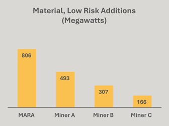 The Onsite Power vertical intends to add substantial capacity over the next few years as the Company grows into the next BTC halving. We believe MARA’s ability to pair onsite demand to onsite power (fueled by low-cost natural gas) will unlock hundreds of MW—if not more than a GW—of low-cost and long-duration gas-to-power opportunities.