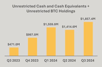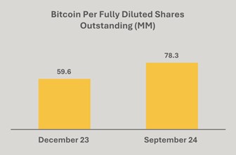 At quarter end, held 26,747 bitcoin (“BTC”) on our balance sheet. During the quarter, we mined 2,070 BTC and purchased 6,210 BTC, of which 4,144 were acquired using proceeds from a $300 million offering of convertible senior notes at an average price of $59,500 per BTC. As of the end of Q3 2024, we had an improvement in BTC per share yield of 29%. We did not sell any BTC.