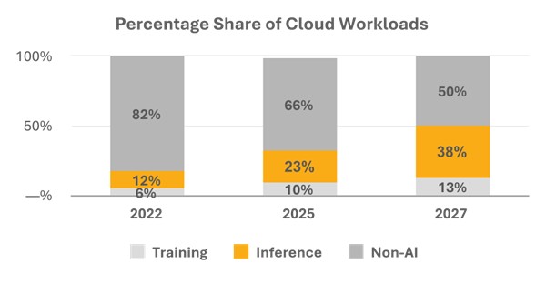 This shift is happening fast. According to Jefferies, AI inference workloads will grow from 12% in 2022 to 38% by 2027, which we believe will drive the vast majority of AI-related revenue.