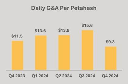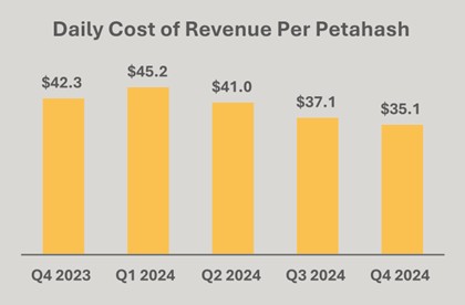 Cost of revenue per petahash per day improved by 17% for the full year and 5% in Q4 2024 (excluding depreciation).