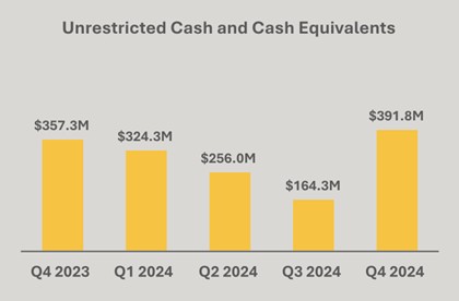 Revenues increased 37% to $214.4 million in Q4 2024 from $156.8 million in Q4 2023. For the full year, revenues grew 69% to $656.4 million from $387.5 million in 2023.