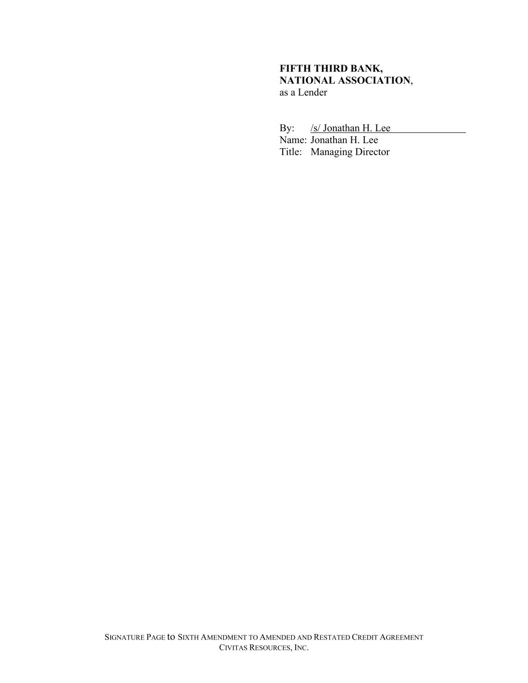 SIGNATURE PAGE to SIXTH AMENDMENT TO AMENDED AND RESTATED CREDIT AGREEMENT CIVITAS RESOURCES, INC. FIFTH THIRD BANK, NATIONAL ASSOCIATION, as a Lender By: /s/ Jonathan H. Lee Name: Jonathan H. Lee Title: Managing Director
