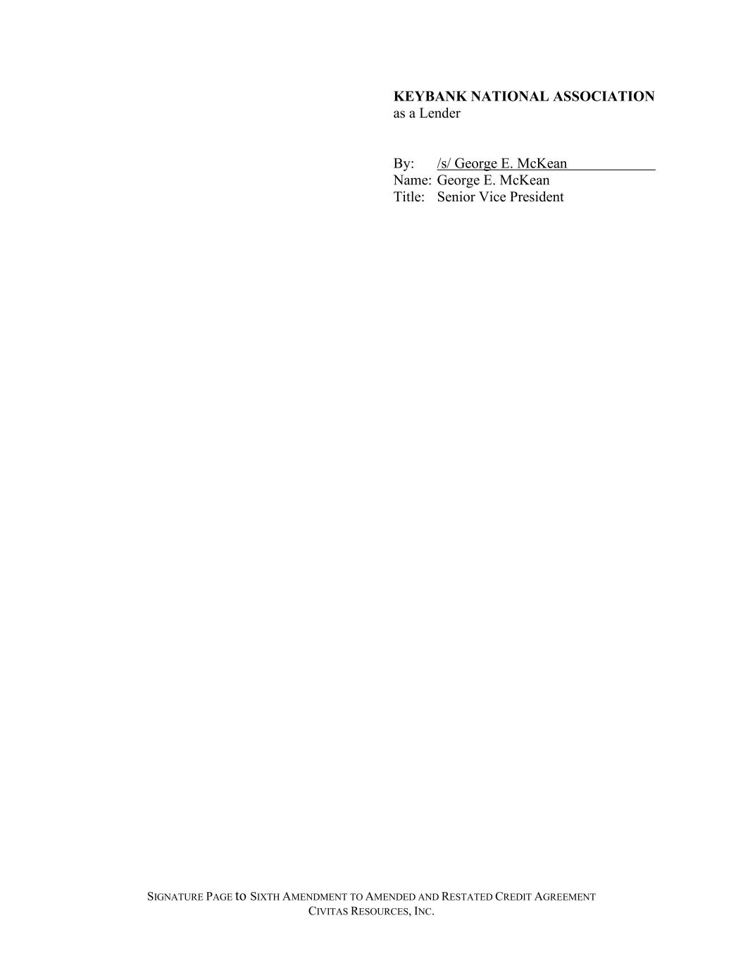 SIGNATURE PAGE to SIXTH AMENDMENT TO AMENDED AND RESTATED CREDIT AGREEMENT CIVITAS RESOURCES, INC. KEYBANK NATIONAL ASSOCIATION as a Lender By: /s/ George E. McKean Name: George E. McKean Title: Senior Vice President