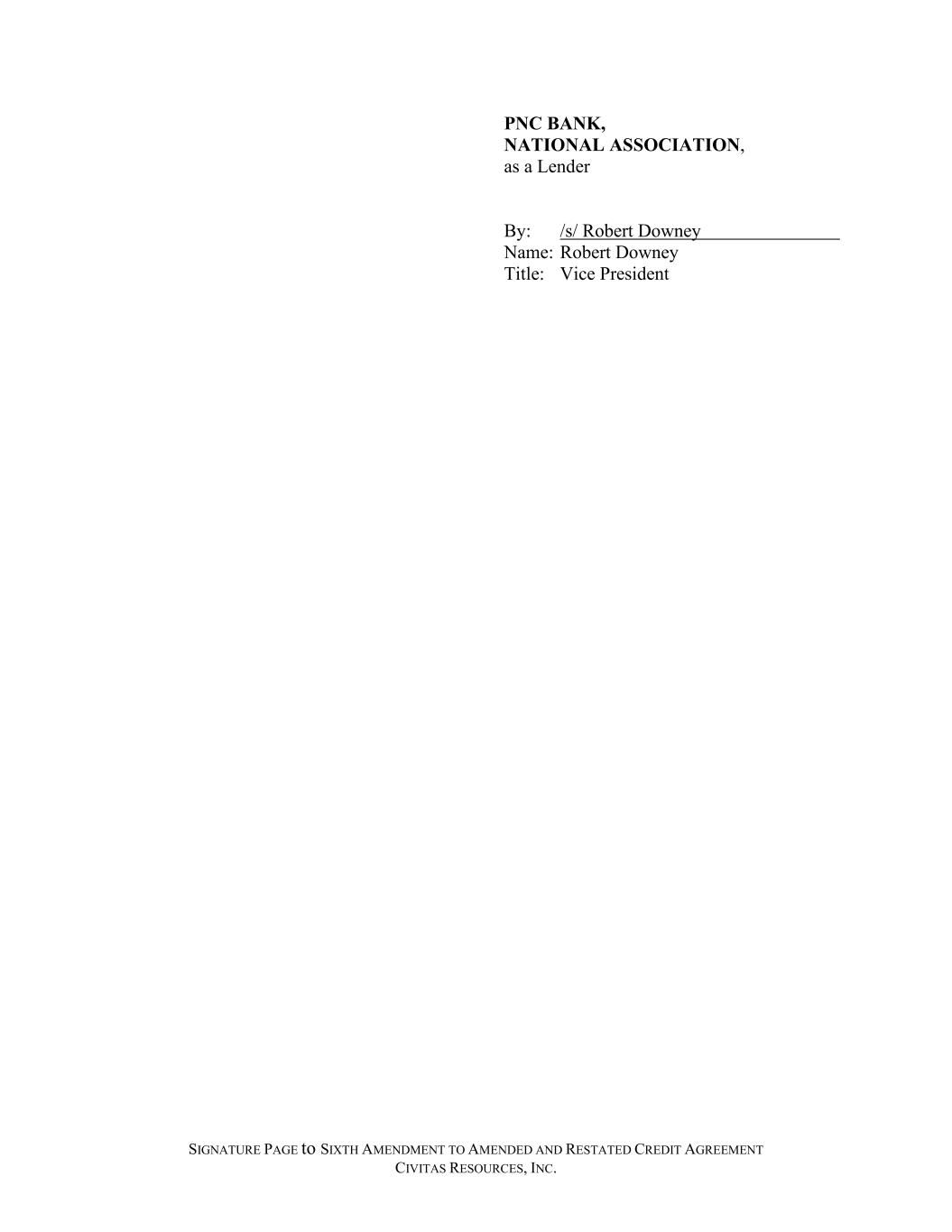 SIGNATURE PAGE to SIXTH AMENDMENT TO AMENDED AND RESTATED CREDIT AGREEMENT CIVITAS RESOURCES, INC. PNC BANK, NATIONAL ASSOCIATION, as a Lender By: /s/ Robert Downey Name: Robert Downey Title: Vice President