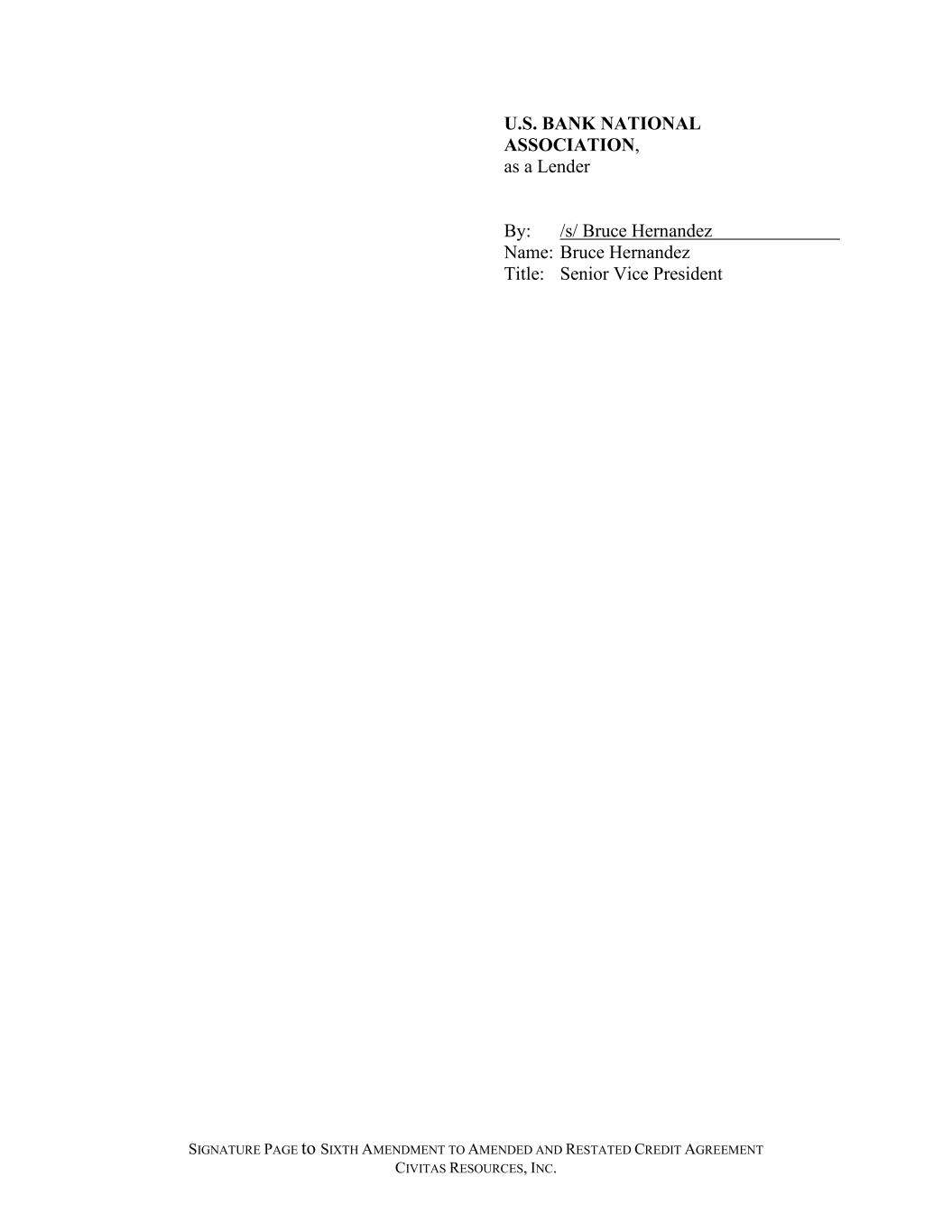 SIGNATURE PAGE to SIXTH AMENDMENT TO AMENDED AND RESTATED CREDIT AGREEMENT CIVITAS RESOURCES, INC. U.S. BANK NATIONAL ASSOCIATION, as a Lender By: /s/ Bruce Hernandez Name: Bruce Hernandez Title: Senior Vice President
