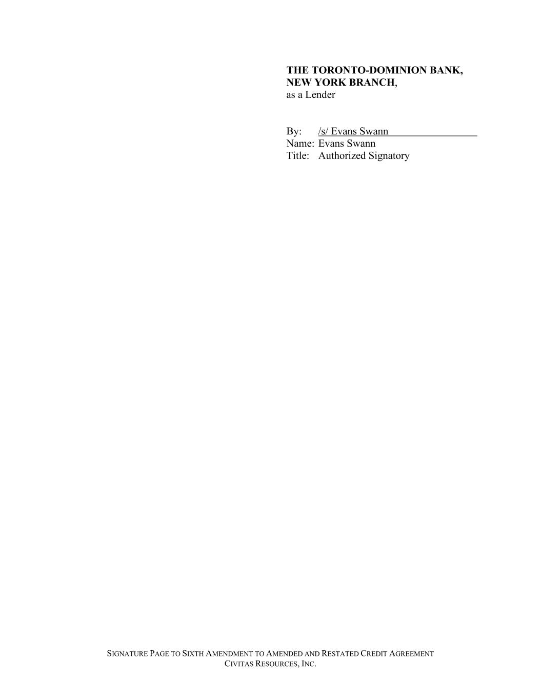 SIGNATURE PAGE TO SIXTH AMENDMENT TO AMENDED AND RESTATED CREDIT AGREEMENT CIVITAS RESOURCES, INC. THE TORONTO-DOMINION BANK, NEW YORK BRANCH, as a Lender By: /s/ Evans Swann Name: Evans Swann Title: Authorized Signatory