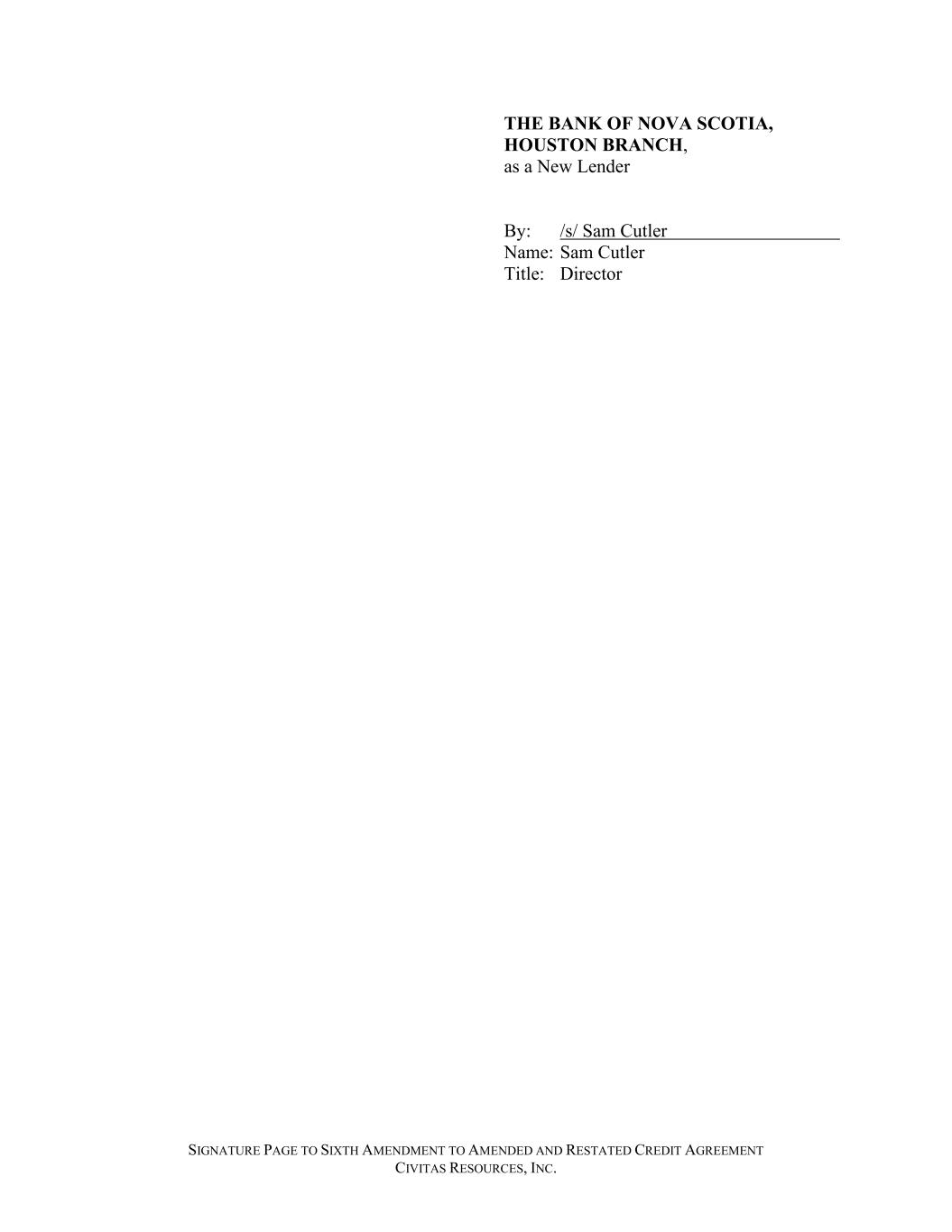 SIGNATURE PAGE TO SIXTH AMENDMENT TO AMENDED AND RESTATED CREDIT AGREEMENT CIVITAS RESOURCES, INC. THE BANK OF NOVA SCOTIA, HOUSTON BRANCH, as a New Lender By: /s/ Sam Cutler Name: Sam Cutler Title: Director