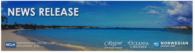Norwegian Cruise Line Holdings Ltd. (NYSE: NCLH) is a leading global cruise company that operates Norwegian Cruise Line, Oceania Cruises and Regent Seven Seas Cruises. With a combined fleet of 35 ships and nearly 75,000 berths, NCLH offers itineraries to approximately 700 destinations worldwide. NCLH expects to add 16 additional ships across its three brands through 2037, which will add approximately 43,000 berths to its fleet. To learn more, visit www.nclhltd.com.