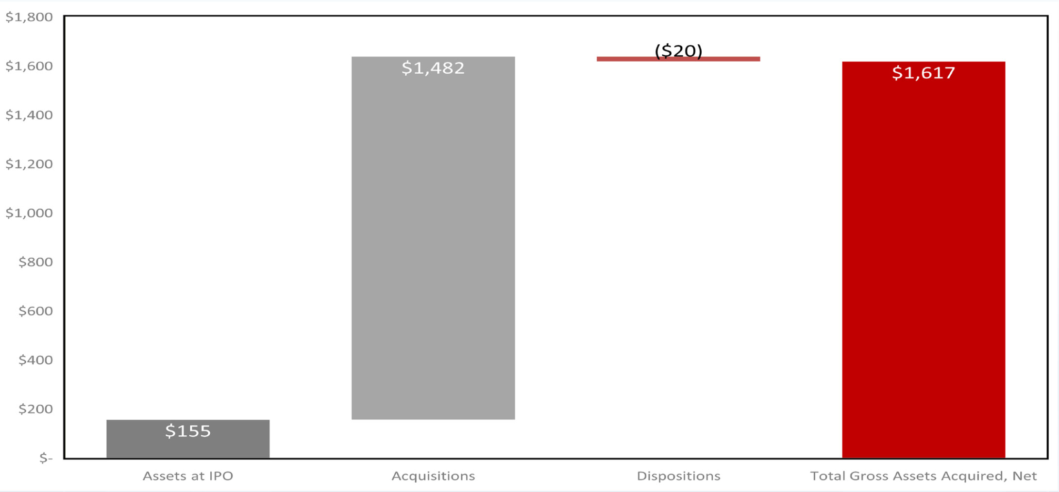 Total Acquisitions Post-IPO   187   $          1,426,215   29,894,952   7.4%    $                   55.94