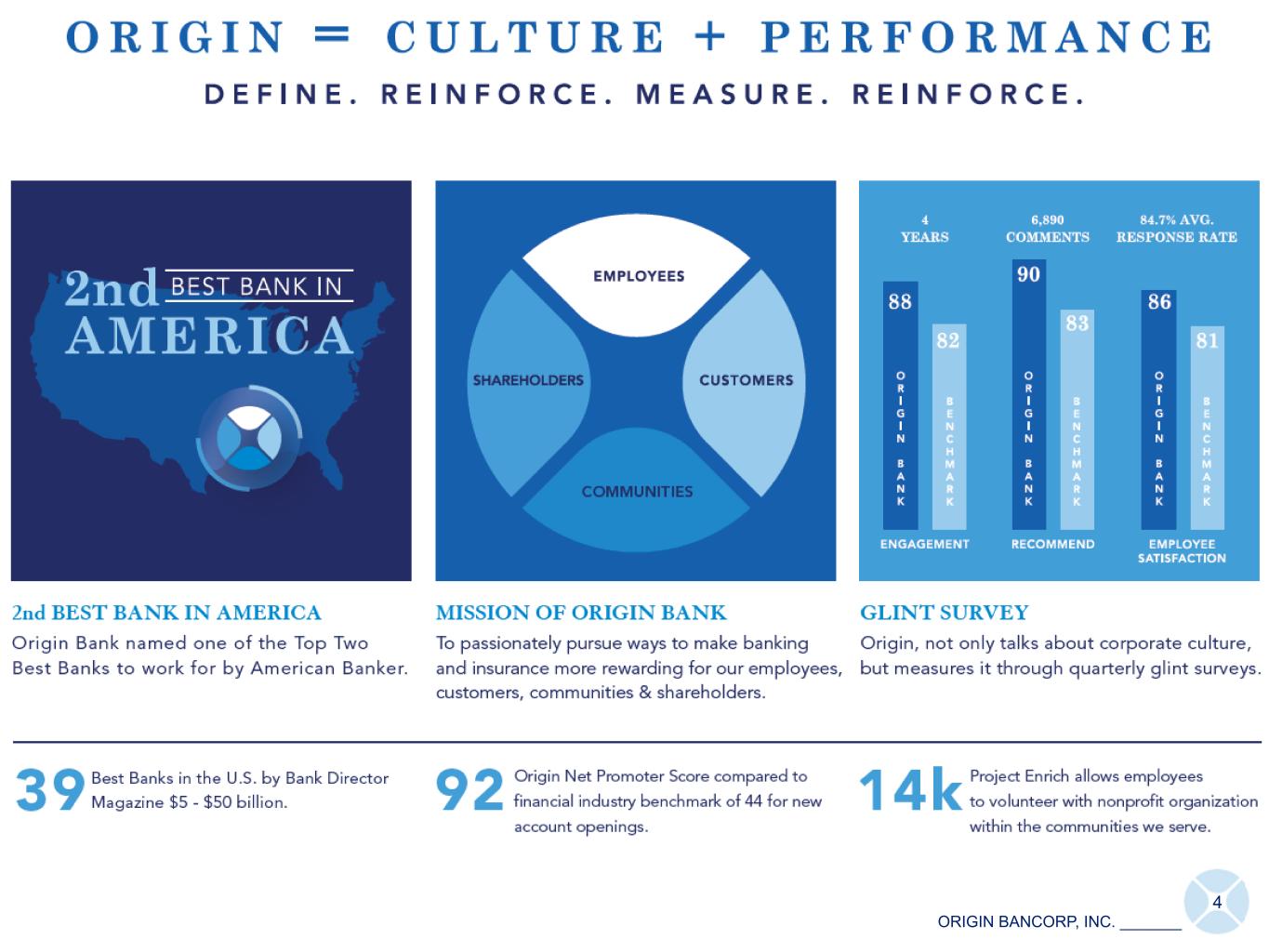ORIGIN BANCORP, INC. _______ 4 A UNIQUE & DEFINED CULTURE