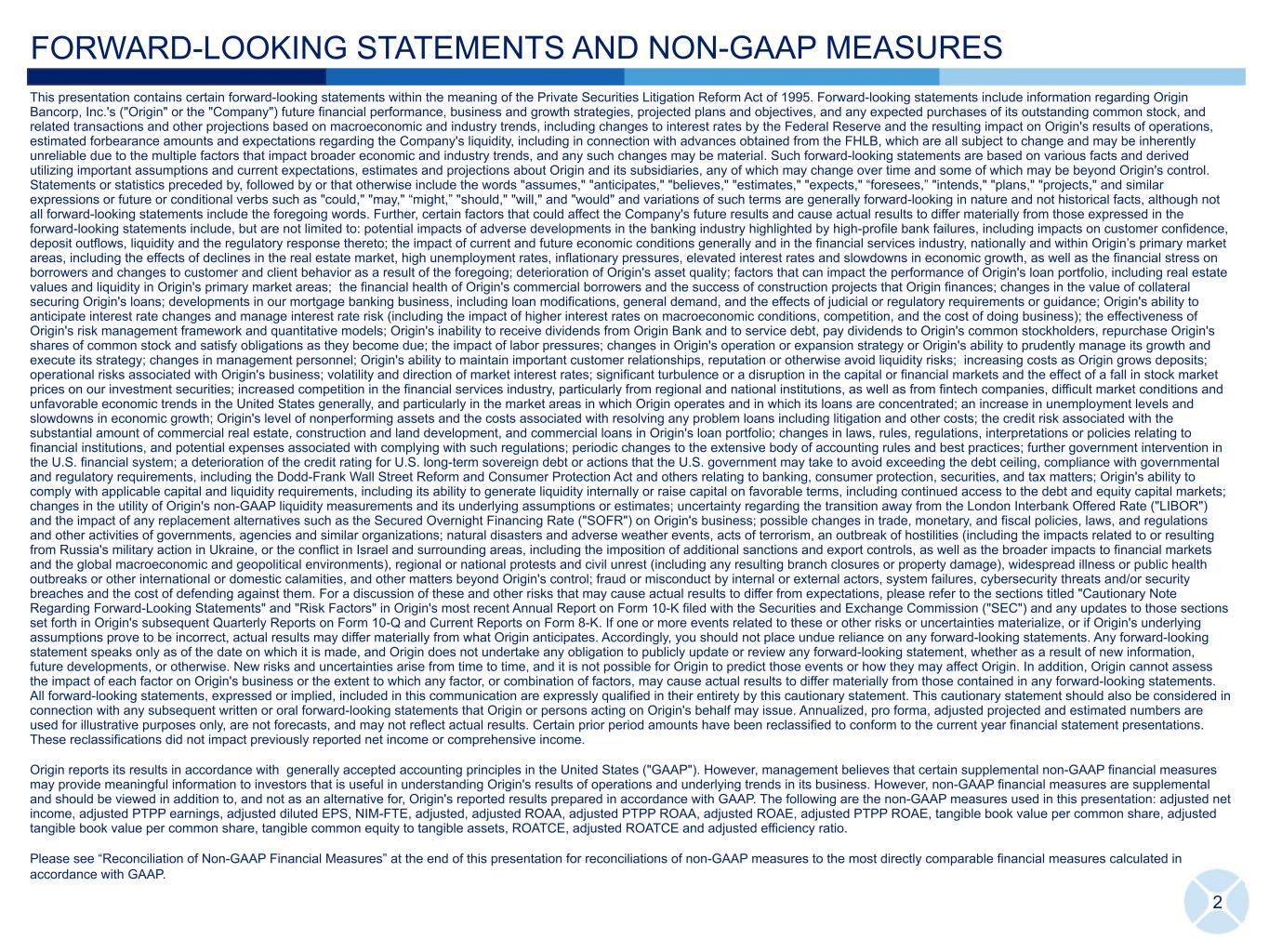 3Q TWENTY23 INVESTOR PRESENTATION ORIGIN BANCORP, INC.