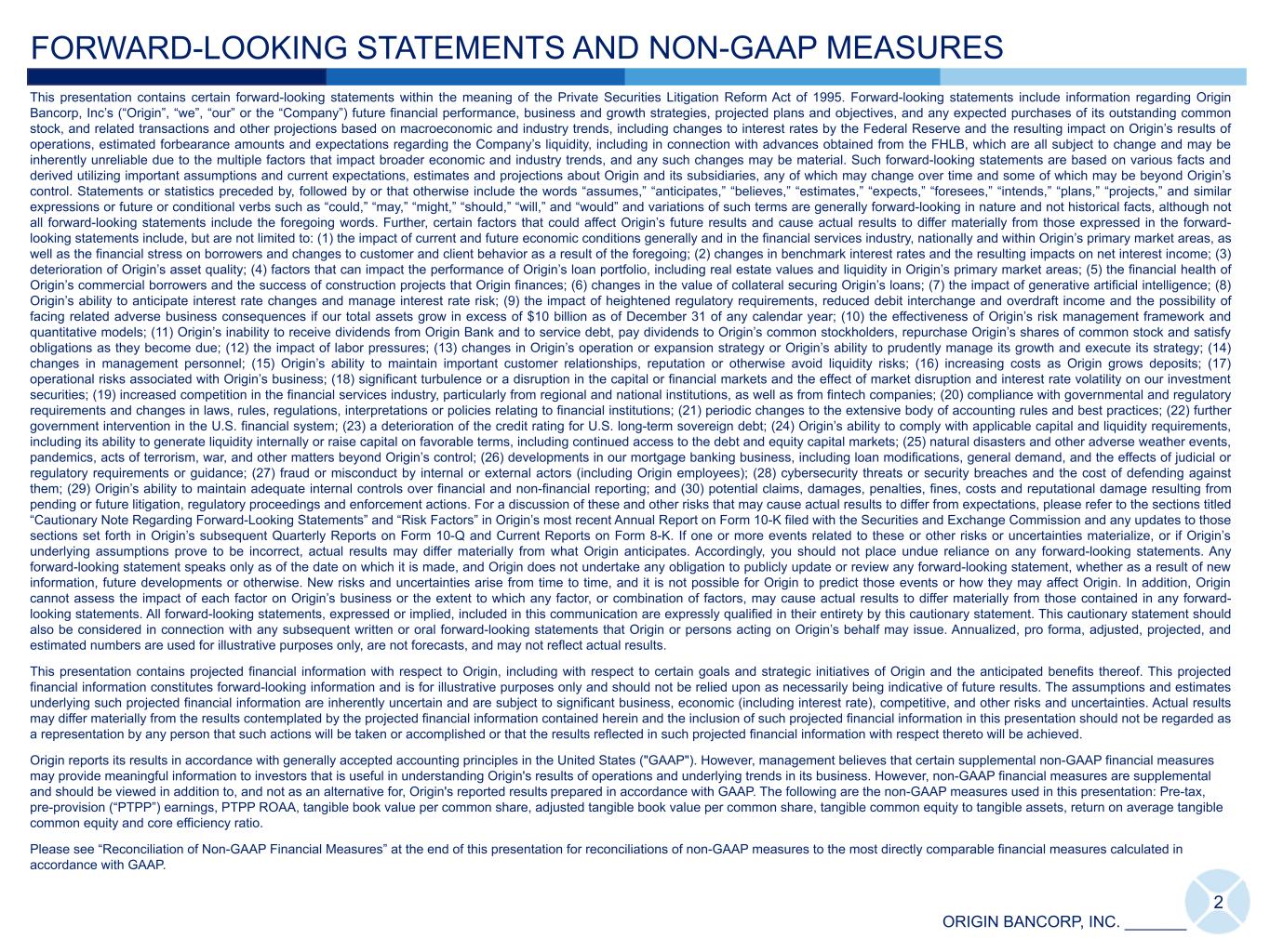 4Q TWENTY24 INVESTOR PRESENTATION ORIGIN BANCORP, INC.