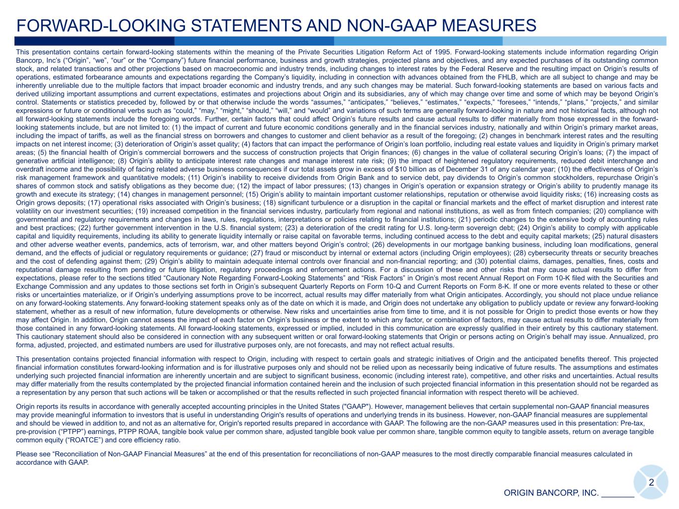 1Q TWENTY25 INVESTOR PRESENTATION ORIGIN BANCORP, INC.