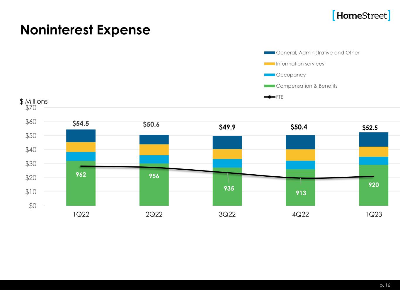 $54.5 $50.6 $49.9 $50.4 962 956 935 913 920 $0 $10 $20 $30 $40 $50 $60 $70 1Q22 2Q22 3Q22 4Q22 1Q23 General, Administrative and Other Information services Occupancy Compensation & Benefits FTE $52.5 Noninterest Expense p. 16 $ Millions