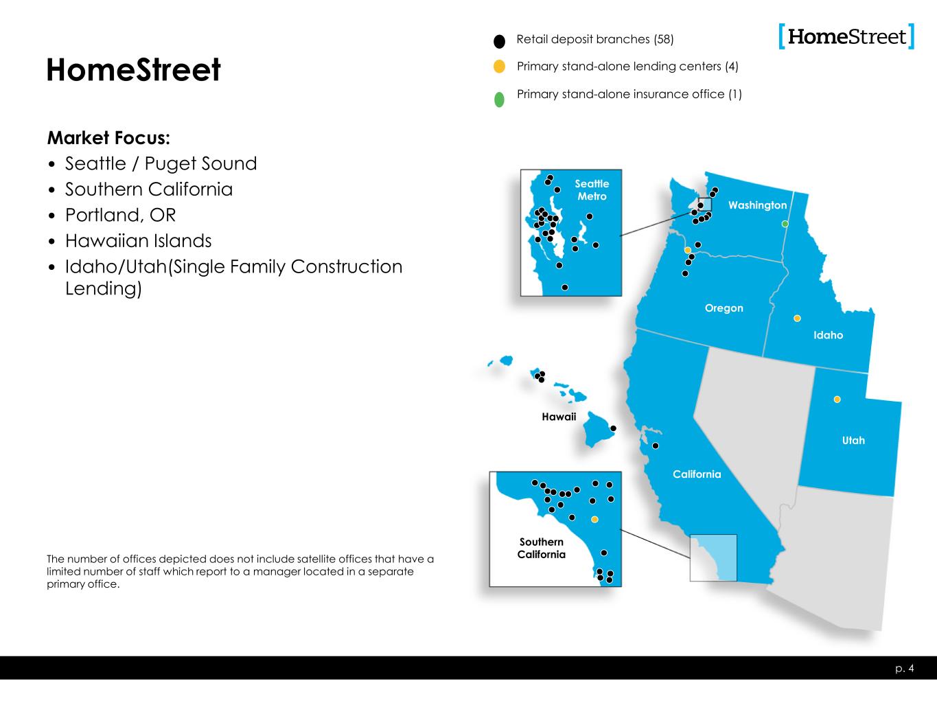 p. 3 Managing through challenging times • Seattle-based diversified commercial & consumer bank – company founded in 1921 • Serving customers throughout the western United States • 58 bank branches • Total assets $9.5 billion Nasdaq: HMST