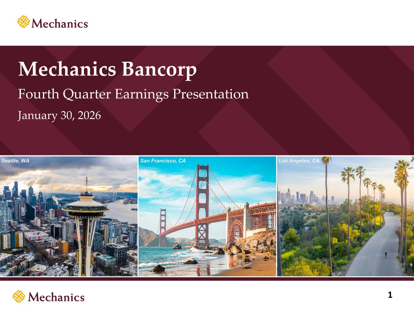97 22 45 215 163 54 197 103 52 228 191 138 205 192 183 70 97 131 0 32 96 51 63 80 Mechanics Bancorp Fourth Quarter Earnings Presentation January 30, 2026 Seattle, WA San Francisco, CA Los Angeles, CA 1