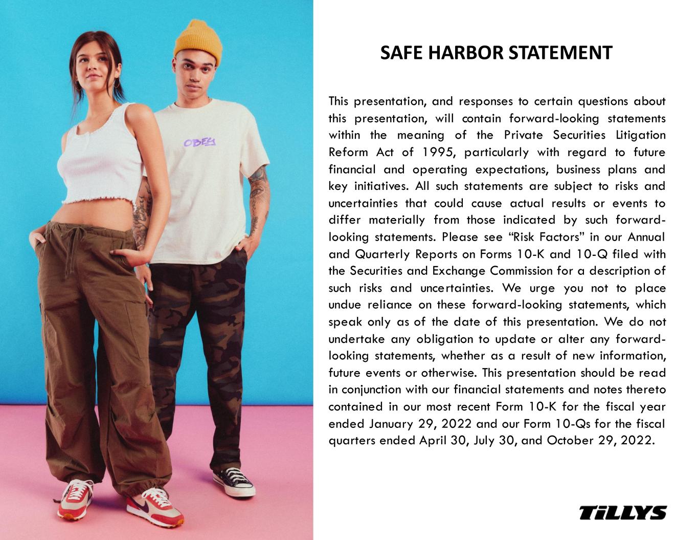 SAFE HARBOR STATEMENT This presentation, and responses to certain questions about this presentation, will contain forward-looking statements within the meaning of the Private Securities Litigation Reform Act of 1995, particularly with regard to future financial and operating expectations, business plans and key initiatives. All such statements are subject to risks and uncertainties that could cause actual results or events to differ materially from those indicated by such forward- looking statements. Please see “Risk Factors” in our Annual and Quarterly Reports on Forms 10-K and 10-Q filed with the Securities and Exchange Commission for a description of such risks and uncertainties. We urge you not to place undue reliance on these forward-looking statements, which speak only as of the date of this presentation. We do not undertake any obligation to update or alter any forward- looking statements, whether as a result of new information, future events or otherwise. This presentation should be read in conjunction with our financial statements and notes thereto contained in our most recent Form 10-K for the fiscal year ended January 29, 2022 and our Form 10-Qs for the fiscal quarters ended April 30, July 30, and October 29, 2022.