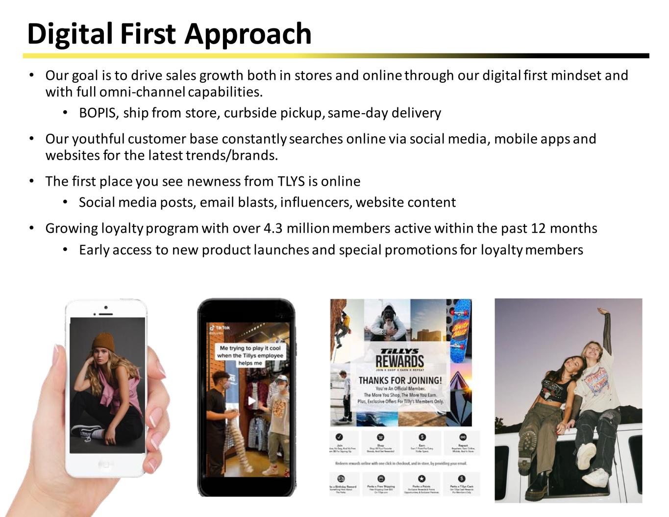 Digital First Approach • Our goal is to drive sales growth both in stores and online through our digital first mindset and with full omni-channel capabilities. • BOPIS, ship from store, curbside pickup, same-day delivery • Our youthful customer base constantly searches online via social media, mobile apps and websites for the latest trends/brands. • The first place you see newness from TLYS is online • Social media posts, email blasts, influencers, website content • Growing loyalty program with over 4.3 million members active within the past 12 months • Early access to new product launches and special promotions for loyalty members