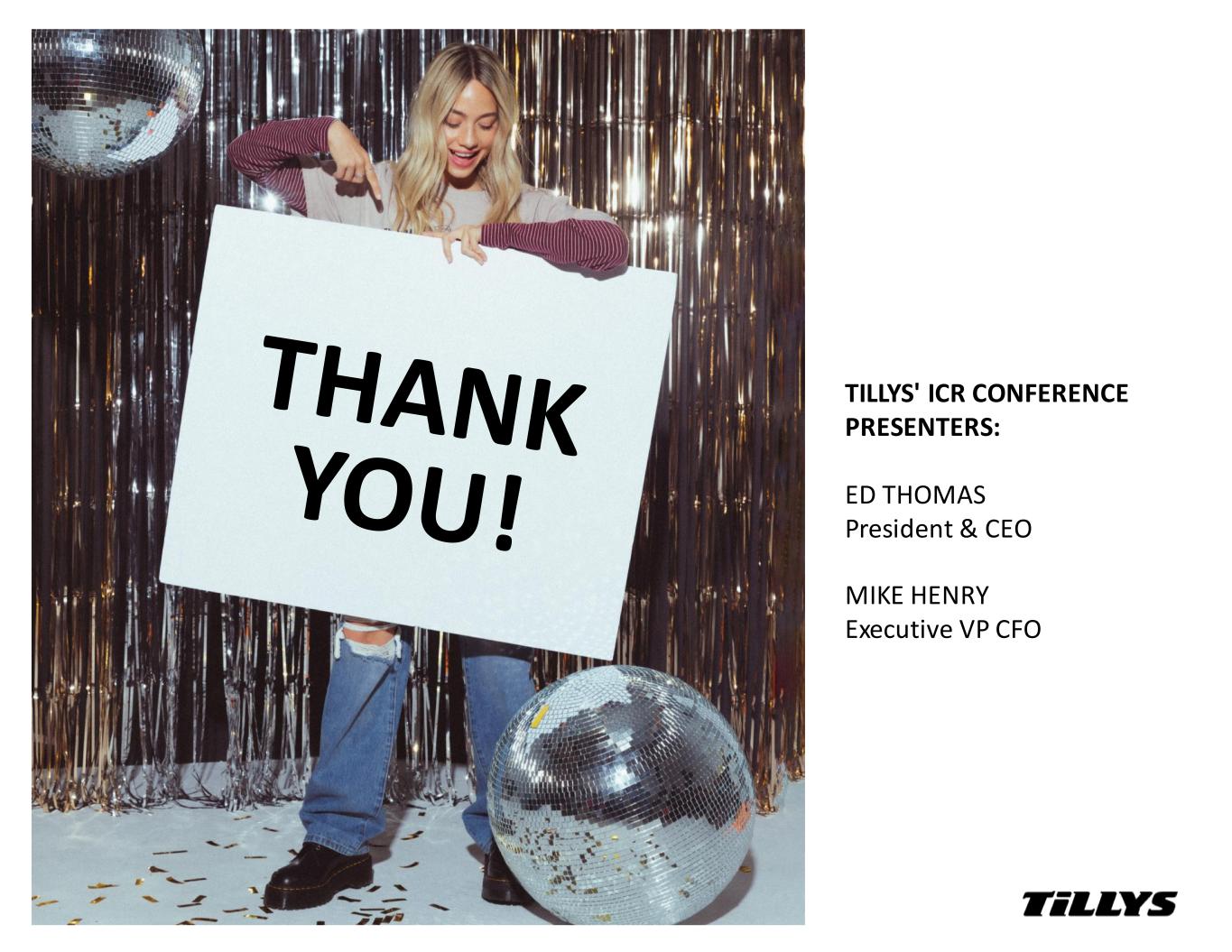 TILLYS' ICR CONFERENCE PRESENTERS: ED THOMAS President & CEO MIKE HENRY Executive VP CFO