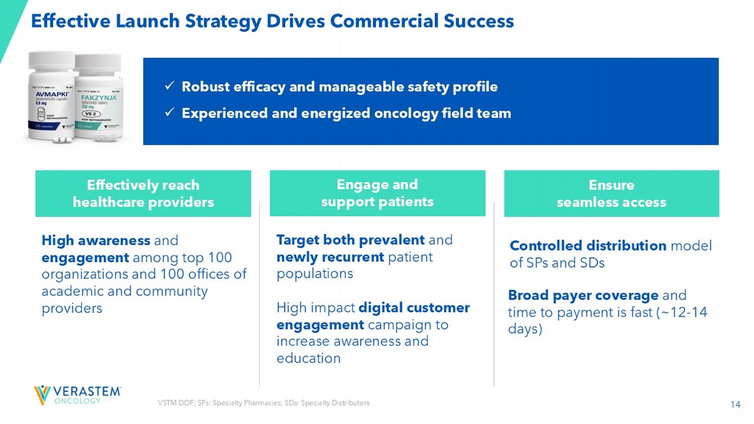 13 Continued Launch Momentum in Q325 133 Prescribers 65% Rx generated by top 100 organizations 60% Rx coming from GynOncs ; 40% from MedOncs of net product revenue in Q3 2025 $11.2M Please see the full Prescribing Information for more information VSTM DOF Q3 2025; Rx – prescriptions; GynOncs : gynecologic oncologists; MedOncs : medical oncologists