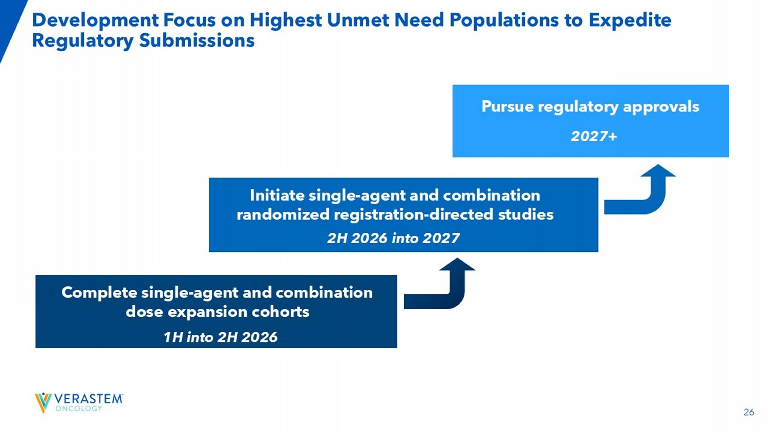 26 Development Focus on Highest Unmet Need Populations to Expedite Regulatory Submissions Initiate single - agent and combination randomized registration - directed studies 2H 2026 into 2027 Pursue regulatory approvals 2027+ Complete single - agent and combination dose expansion cohorts 1H into 2H 2026