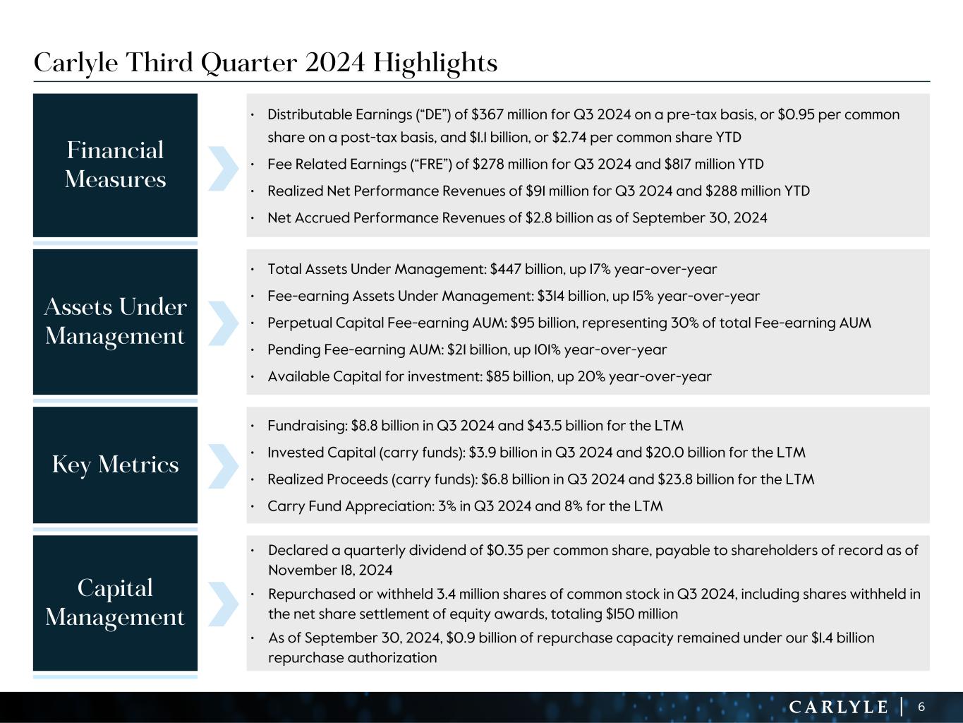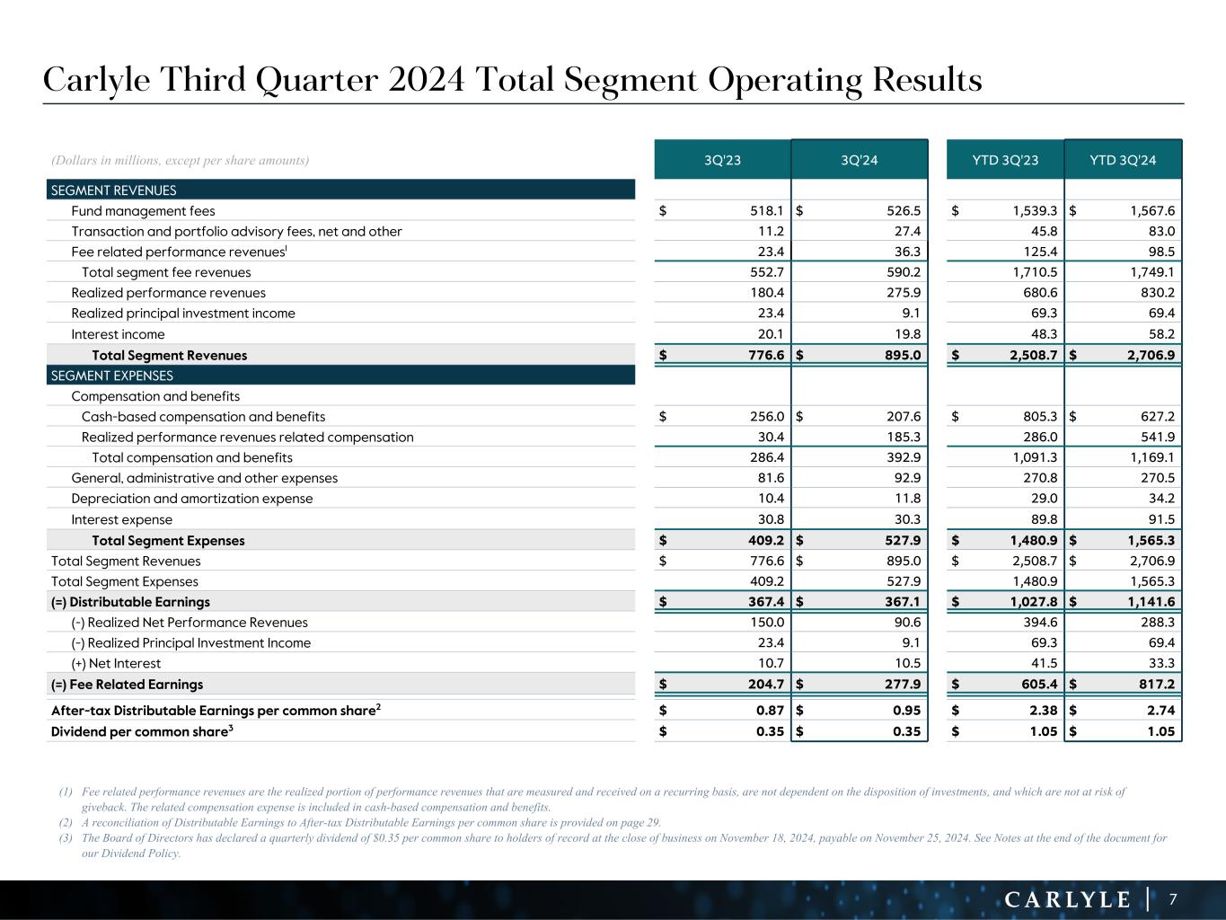 NOVEMBER 7, 2024 Carlyle Reports Third Quarter 2024 Financial Results