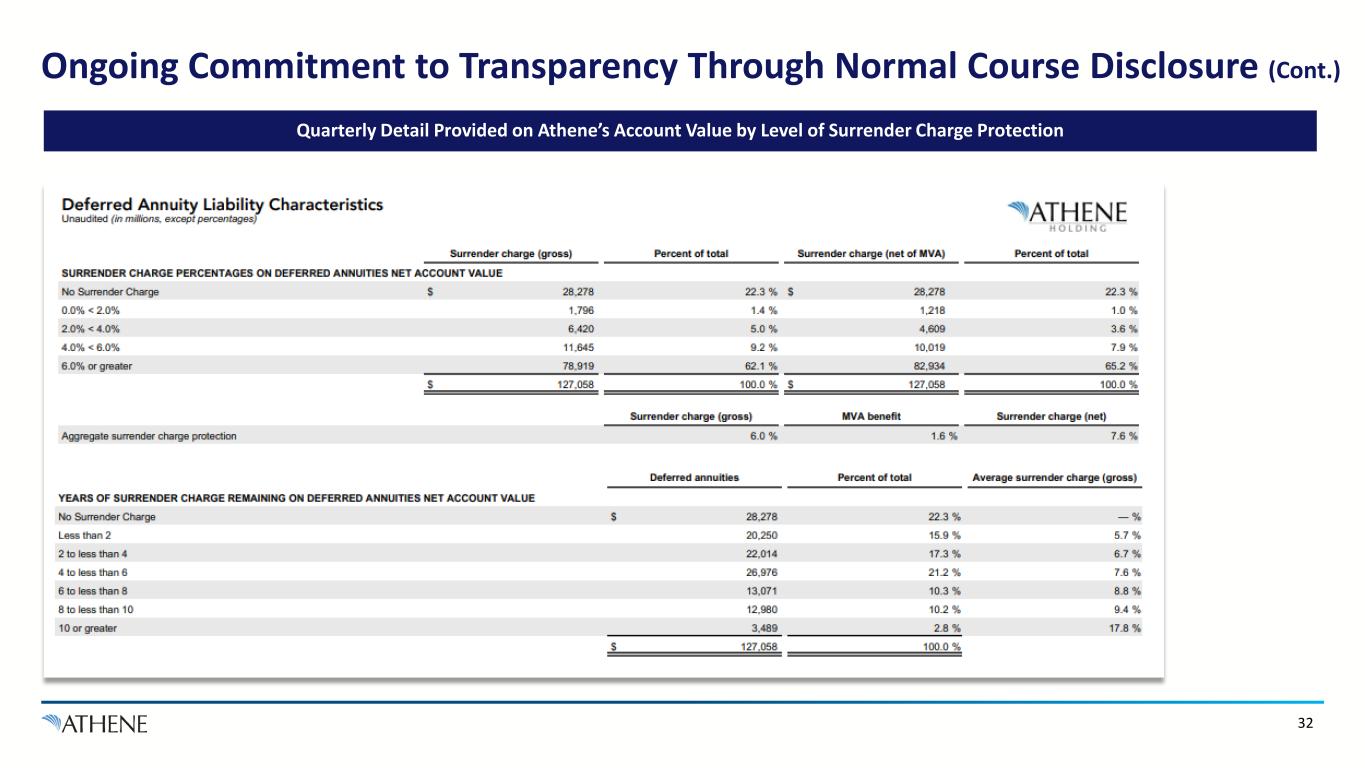 Ongoing Commitment to Transparency Through Normal Course Disclosure 31 Click Here To Access Athene’s 1Q’23 Financial Supplement Quarterly Detail Provided on Athene’s Inflows and Outflows Within Financial Supplement