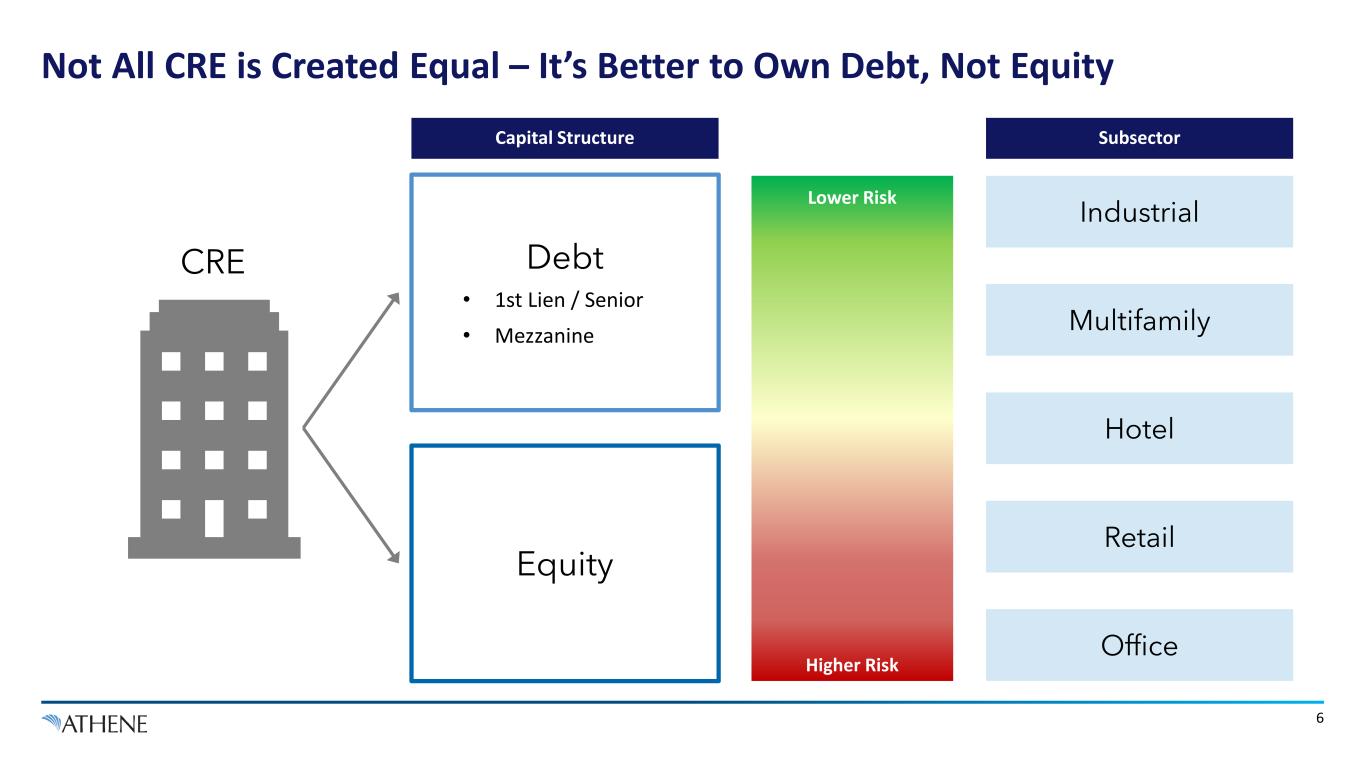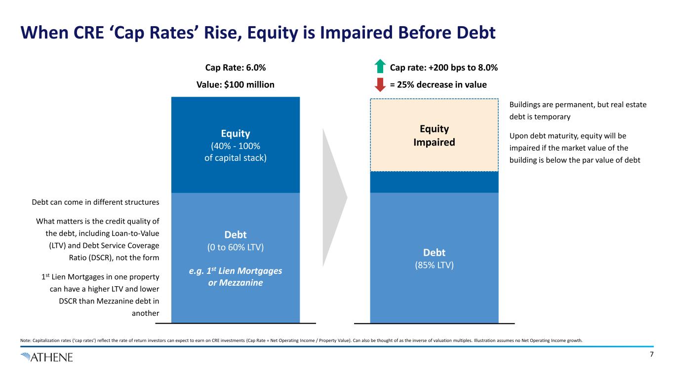Not All CRE is Created Equal – It’s Better to Own Debt, Not Equity 6 Debt • 1st Lien / Senior • Mezzanine Equity Higher Risk Lower Risk Capital Structure Subsector Industrial Multifamily Hotel Retail Office CRE
