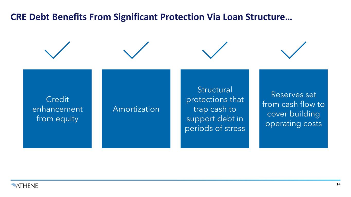 Debt is Well Protected Even With No Net Operating Income Growth 13 0% Net Operating Income (NOI) Growth Annually for 3 Years 5% NOI Growth Annually for 3 Years 10% NOI Growth Annually for 3 Years Impairments Across Various Cap Rate Expansion Scenarios Cap Rate: 6.0% Debt (0 to 60% LTV) Equity (40% - 100% of capital stack) Cap Rate Expansion +1.0% +2.0% +3.0% +4.0% Equity (36%) (63%) (83%) (100%) Debt - - - - Equity (2%) (33%) (57%) (76%) Debt - - - - Equity - (1%) (28%) (50%) Debt - - - - Illustrative Example