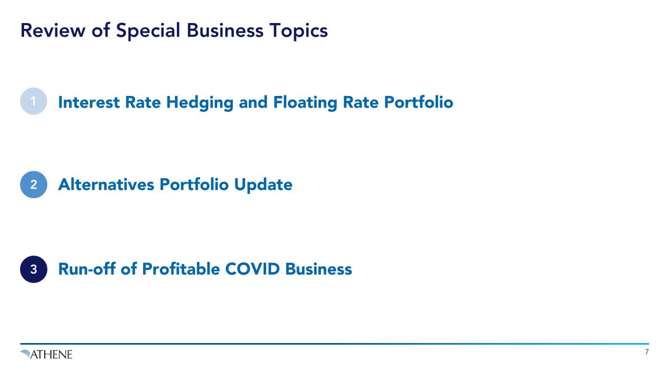 Review of Special Business Topics 2 3 1 Interest Rate Hedging and Floating Rate Portfolio Run-off of Profitable COVID Business Alternatives Portfolio Update 7